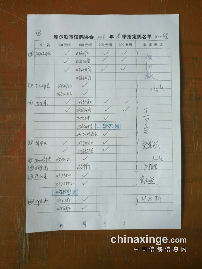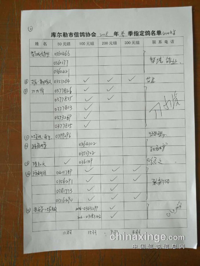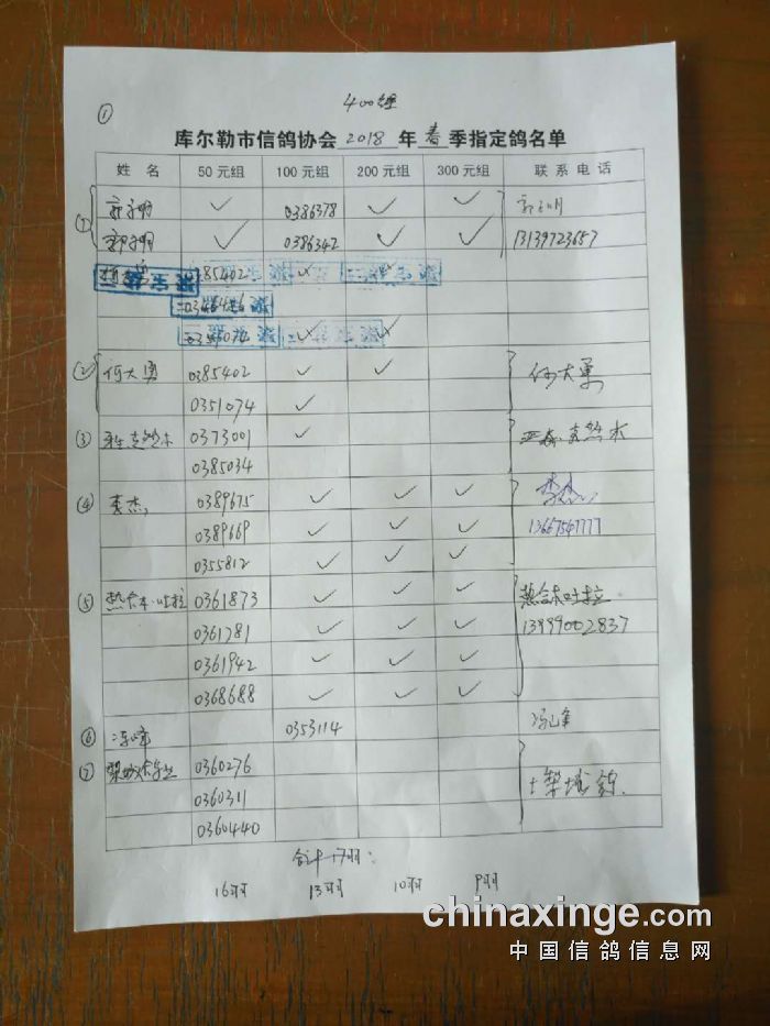 2018年春季四关鸽王第二关400公里指定鸽名单(50、100、200、300)