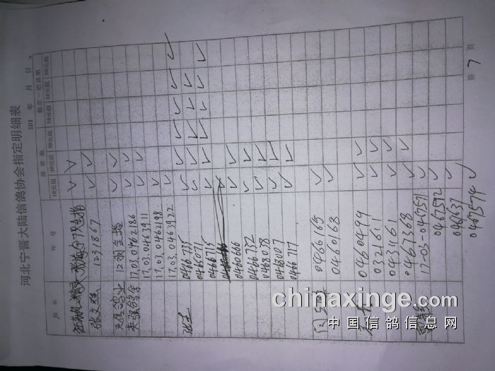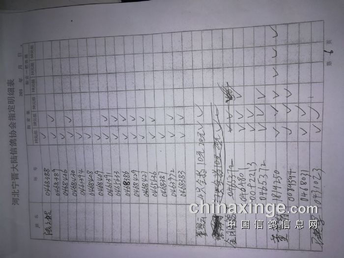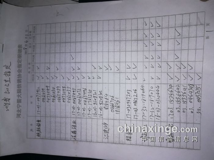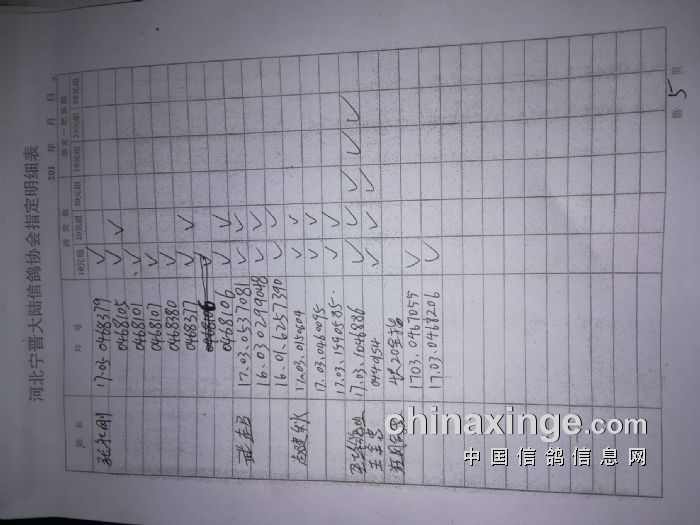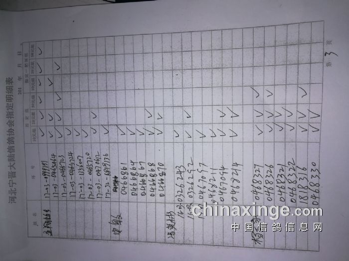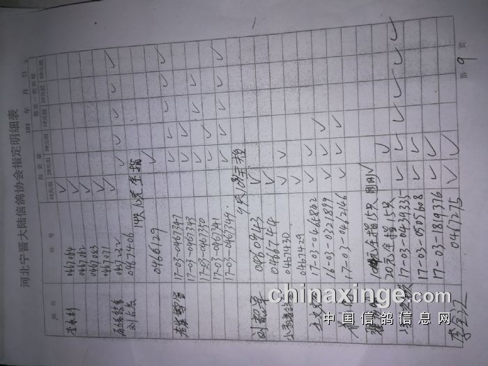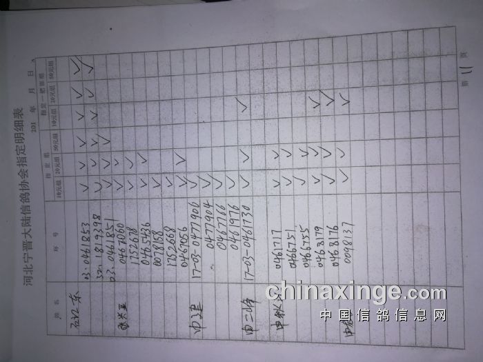宁晋县大陆信鸽协会2018春500公里指定清单