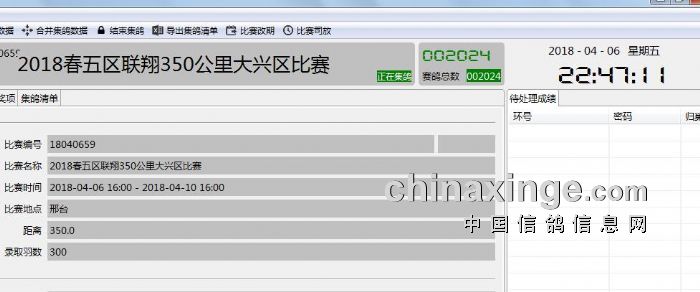25年大兴“金洲杯”千元环一关有效归巢(按棚号)