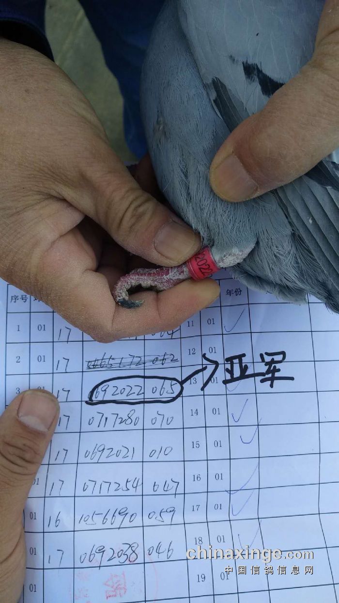 25年大兴“金洲杯”千元环一关有效归巢(按棚号)