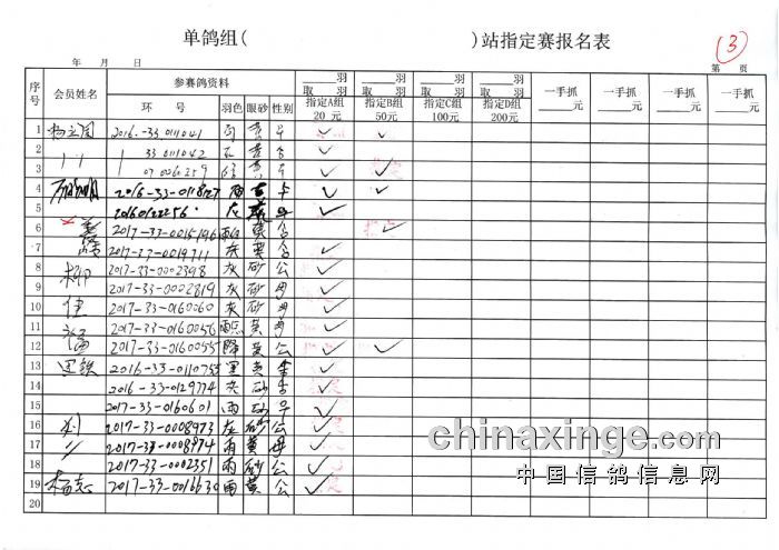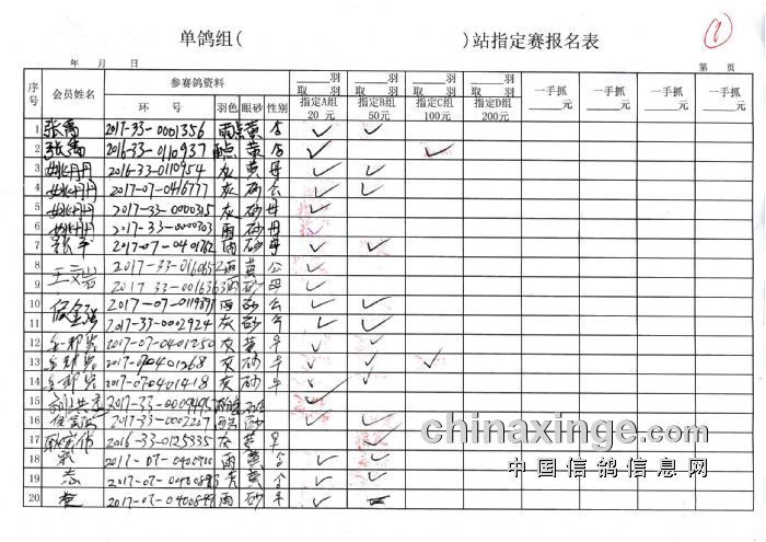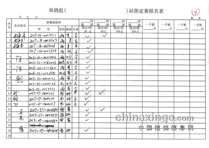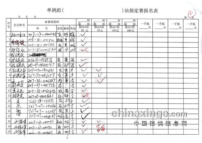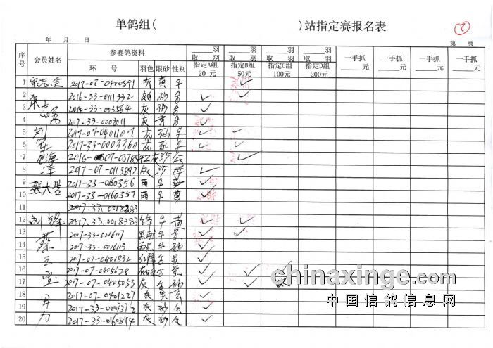 2018年春季300公里扎鲁特旗东站指定鸽原始单据