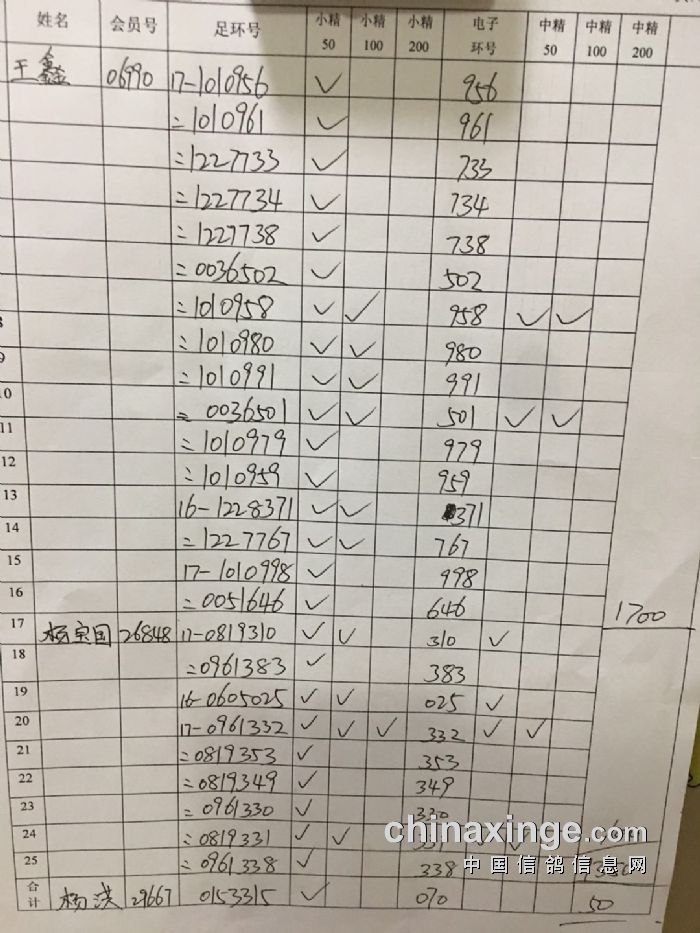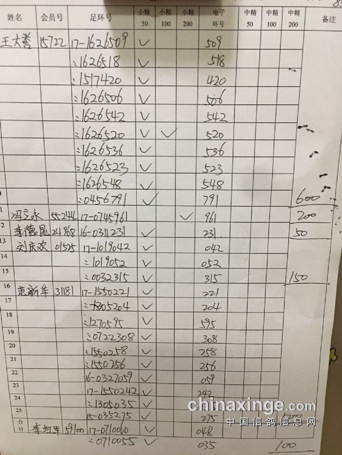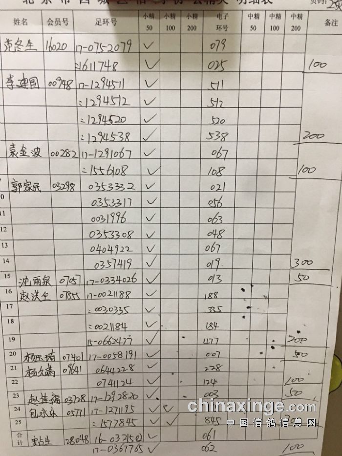 中精英,50元34羽,100元8羽,200元3羽