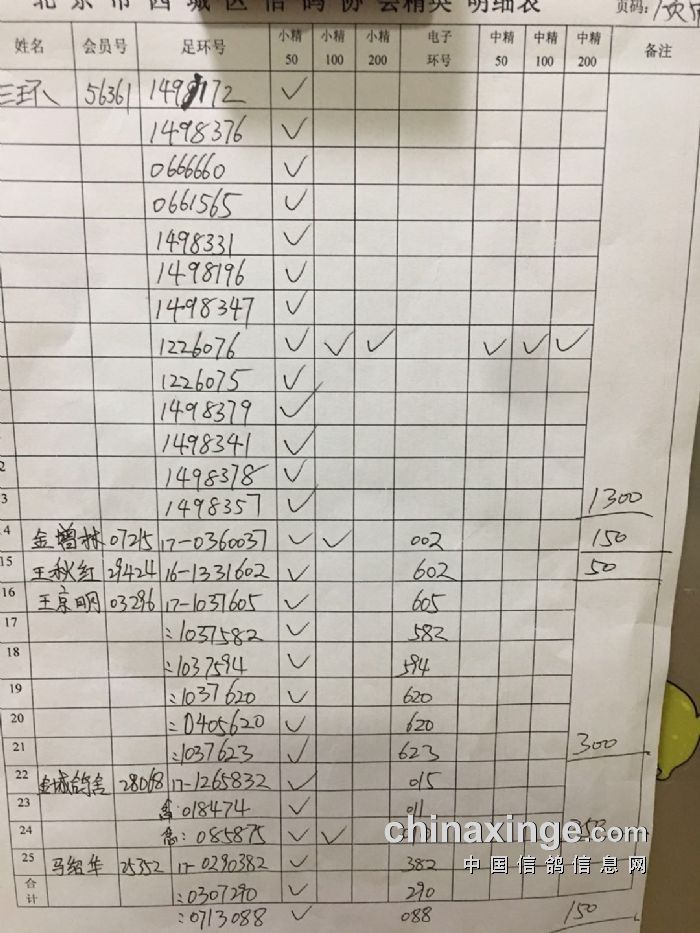 西城鸽会500特比第二关北区临时成绩