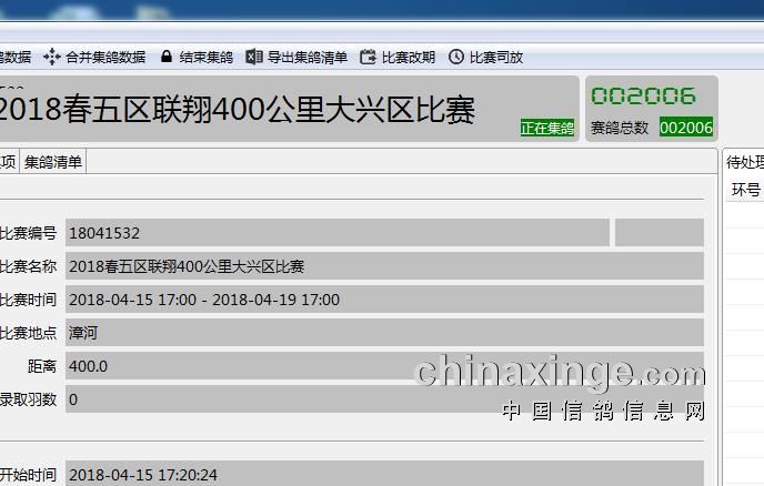 400公里集鸽2006羽,根据规程规定,本次比赛录取300名