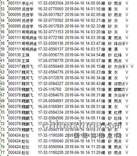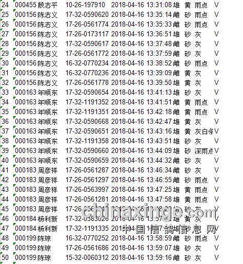 咸阳铁路鸽会2018年春季500公里神木比赛电子集鸽名单