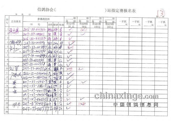 2018年春季350公里扎鲁特旗西站指定鸽原始单据