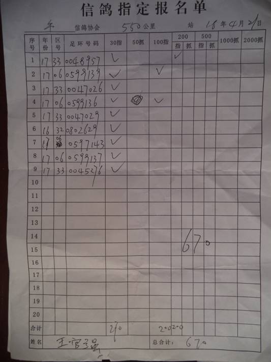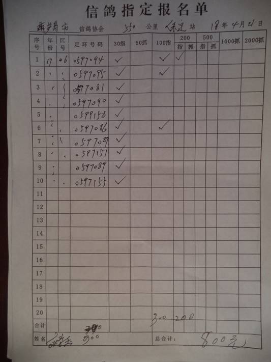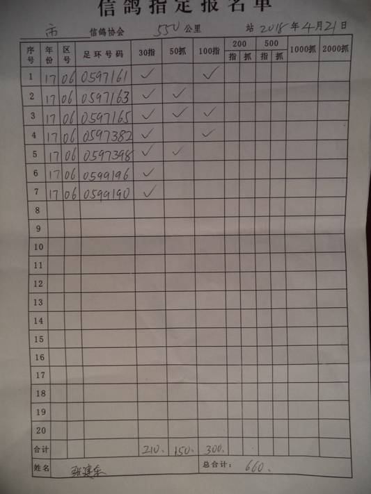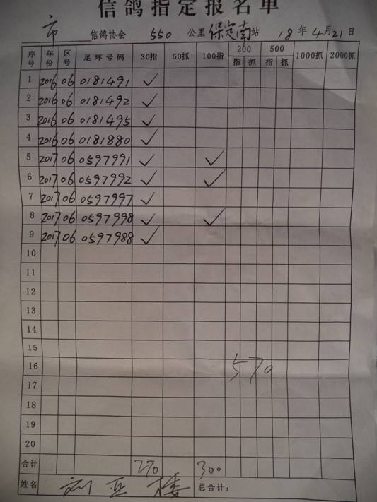 2018春保定550公里指定鸽名单3