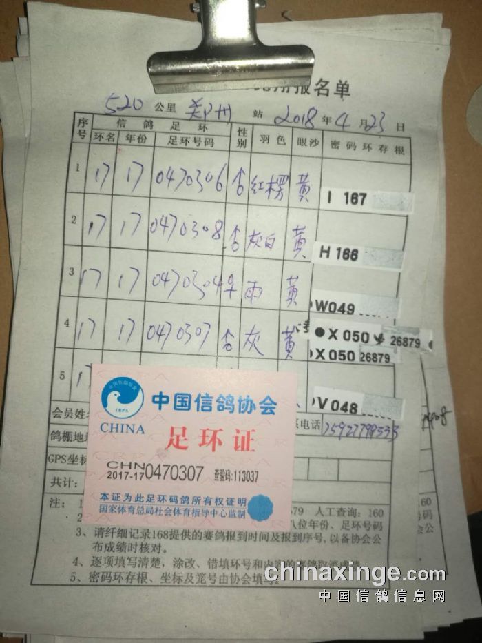 2017年11月22日全国千公里联赛廊坊站比赛集鸽清单