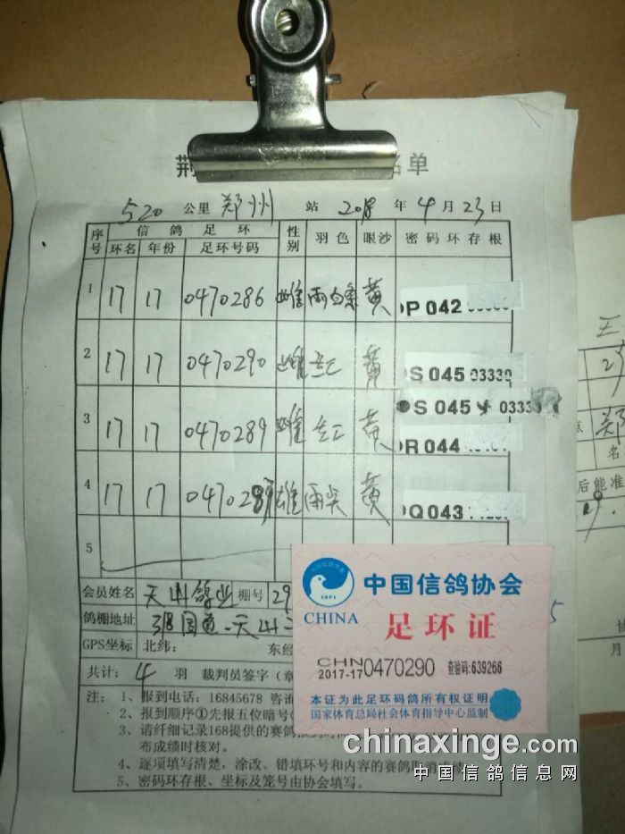 2017年11月26日480公里新郑站年度王中王比赛集鸽清单