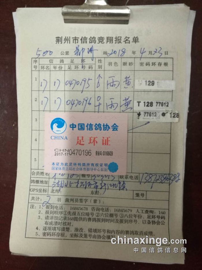 2017年11月22日全国千公里联赛廊坊站比赛集鸽清单
