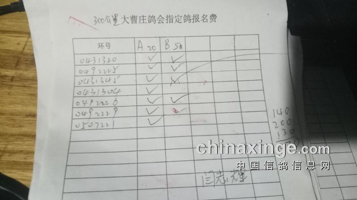 300公里比赛指定鸽名单请核对如有差错请在29号早8.00前更改过时不再更改