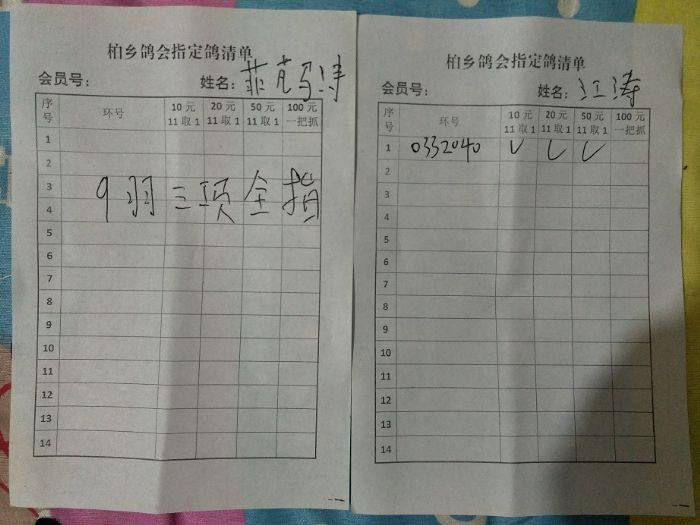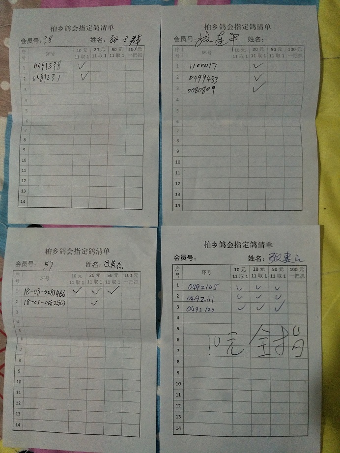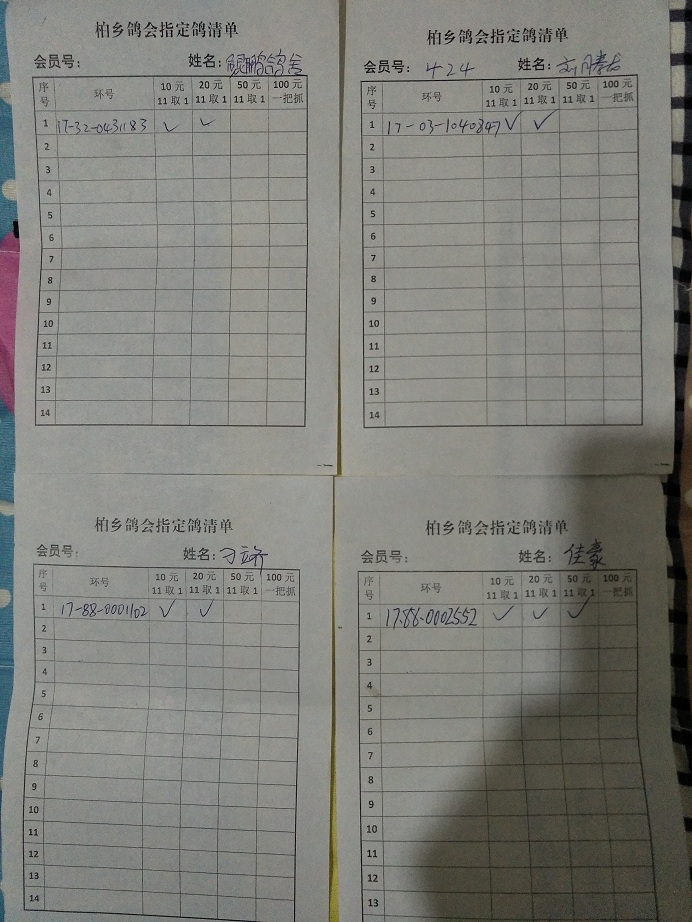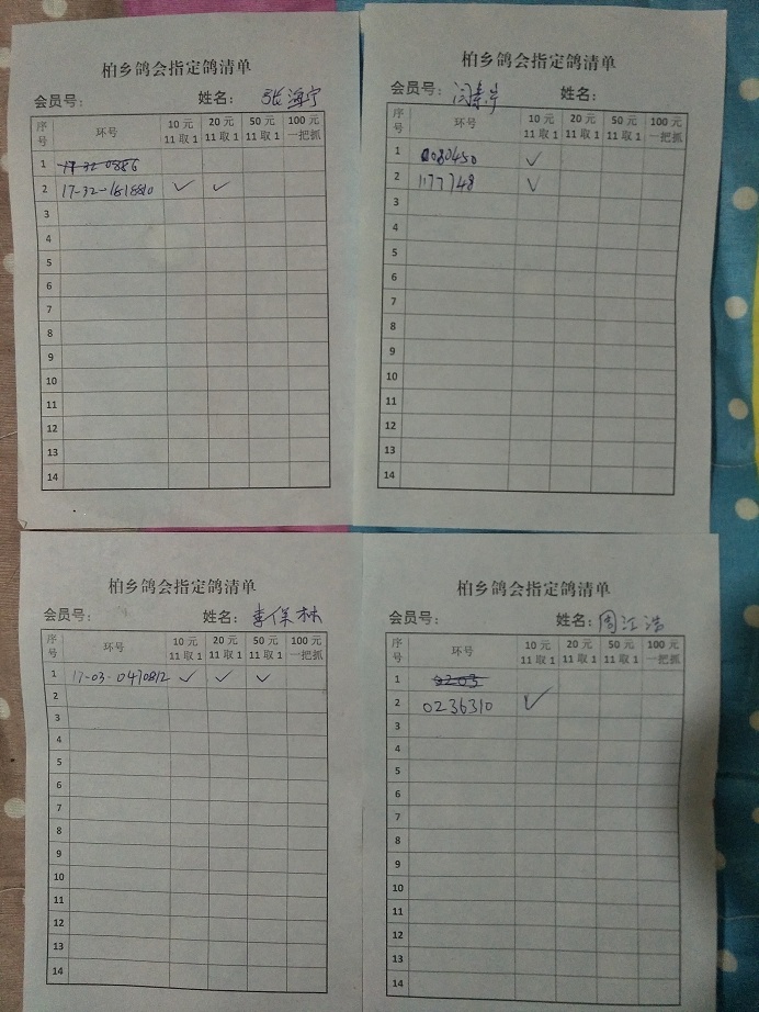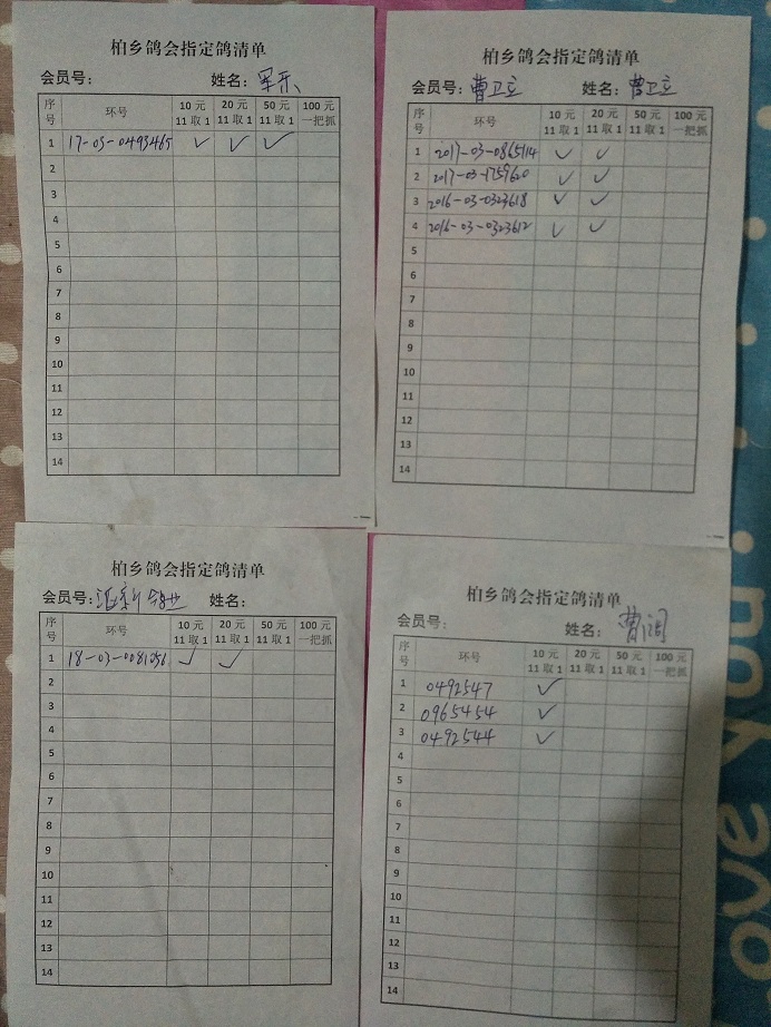 柏乡鸽会千公里第七名、第八名 冯贞禄