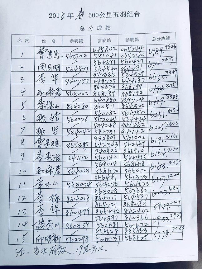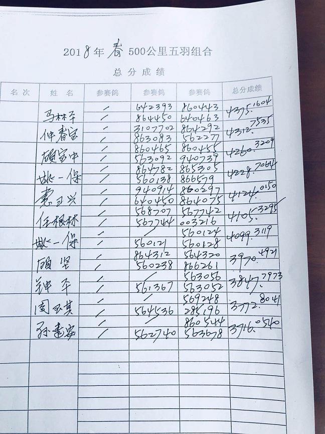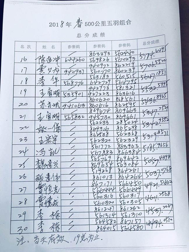 五羽团体赛成绩