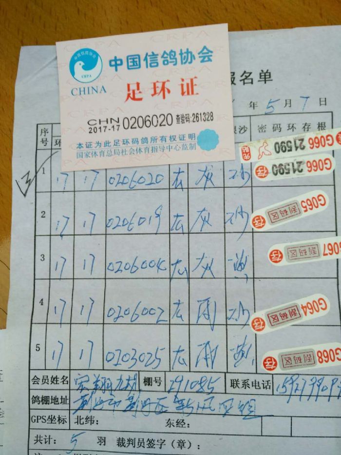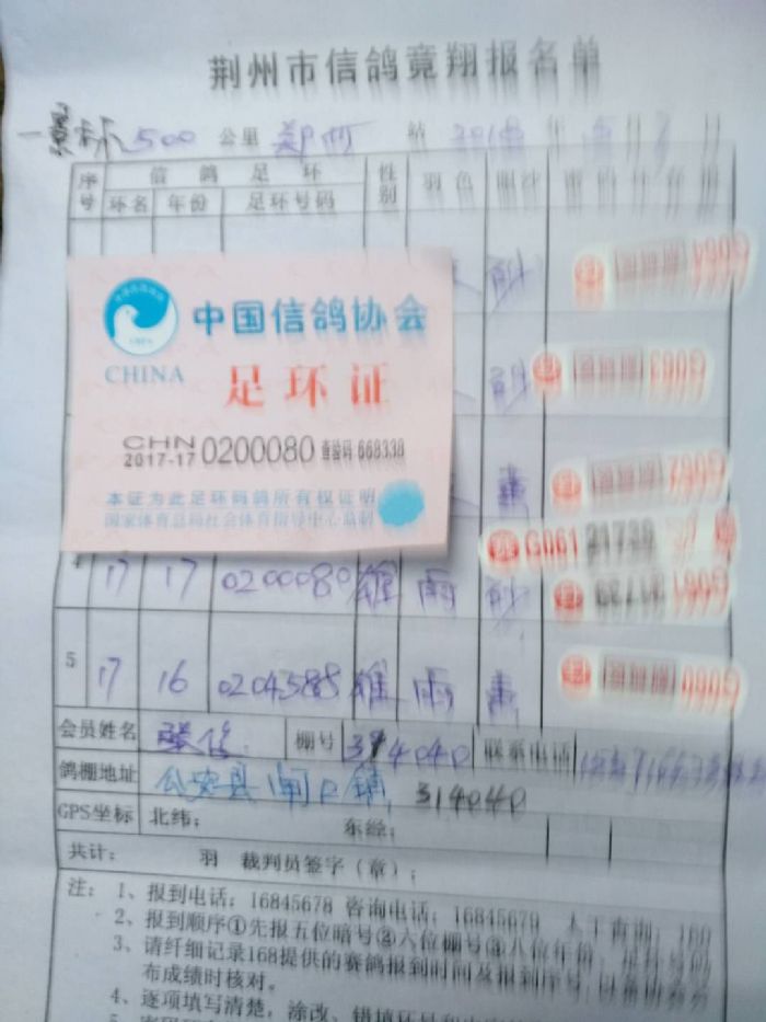 2017年11月22日全国千公里联赛廊坊站比赛集鸽清单