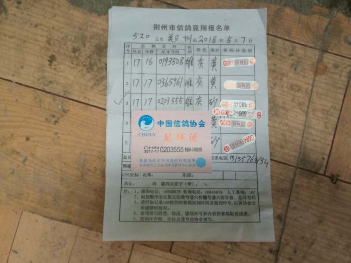 2017年11月22日全国千公里联赛廊坊站比赛集鸽清单