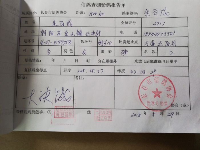 长春市信鸽协会裁判委员会
