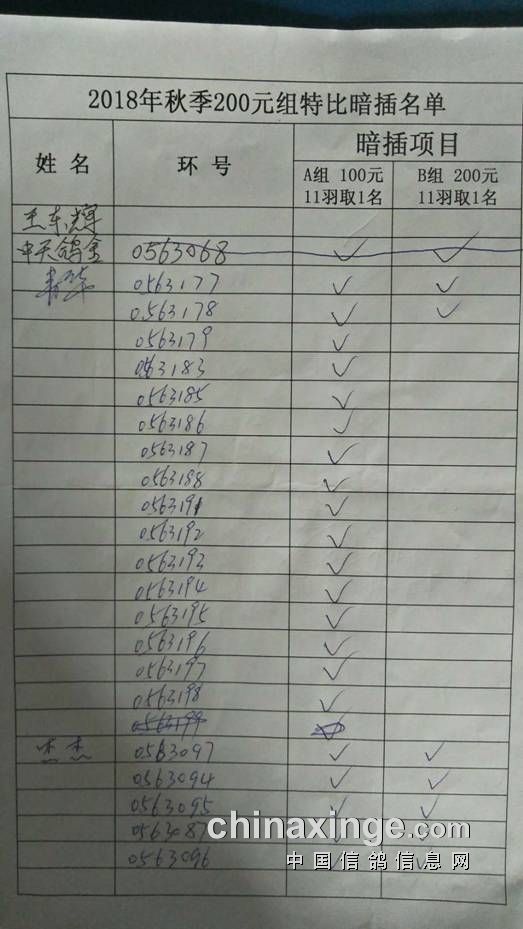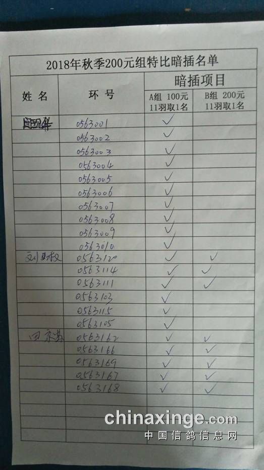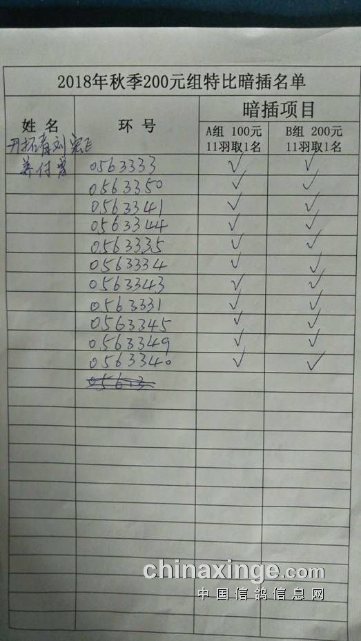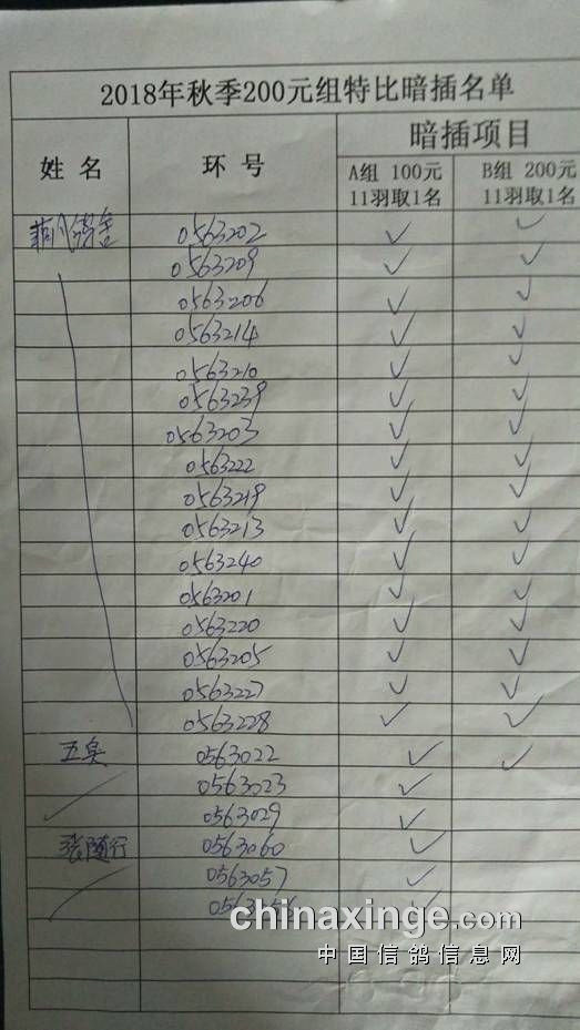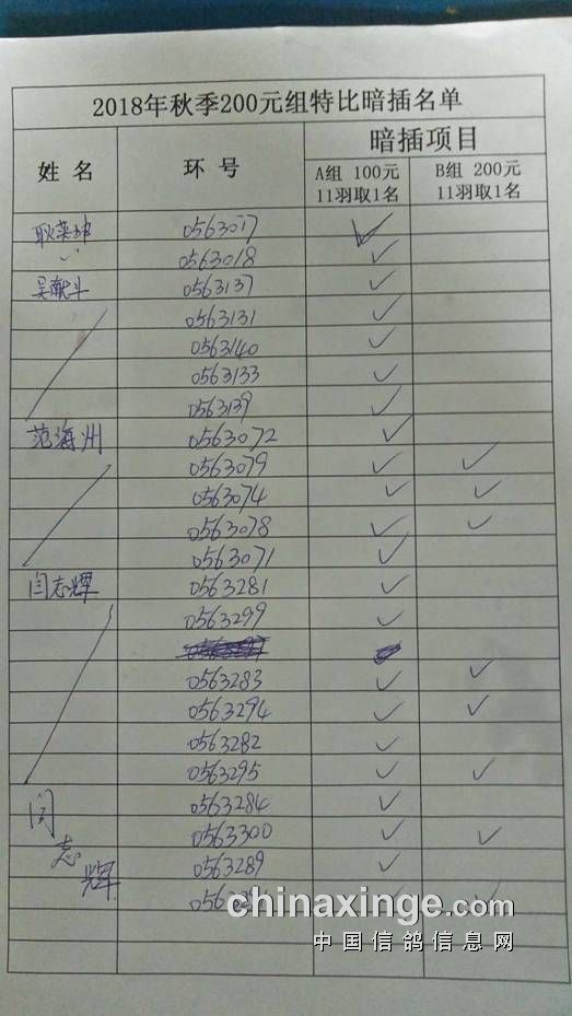 B组200元 11羽取1名,共暗插51羽,取前5名