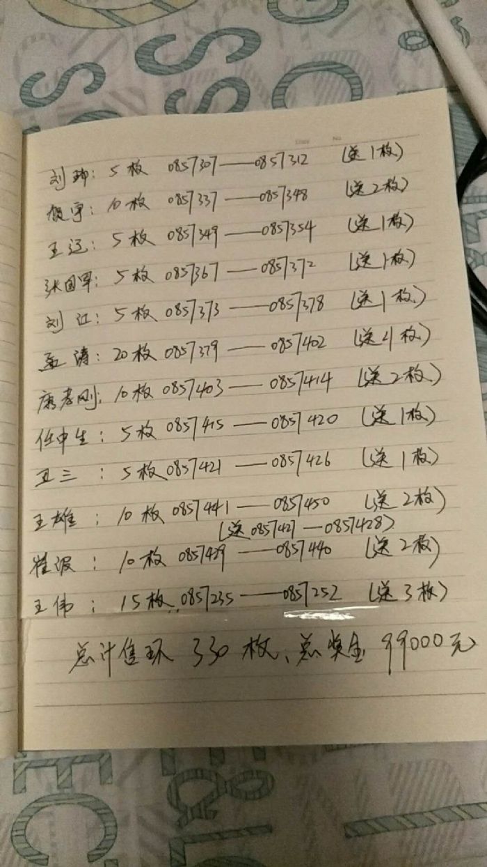 300元组特比售环明细及奖金分配