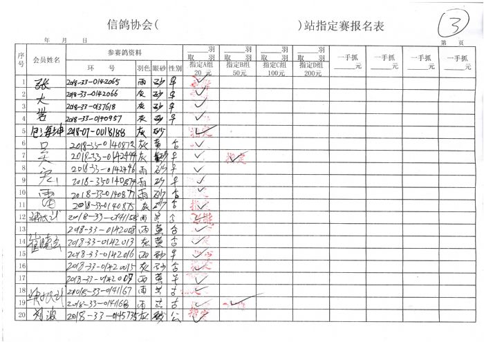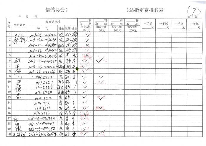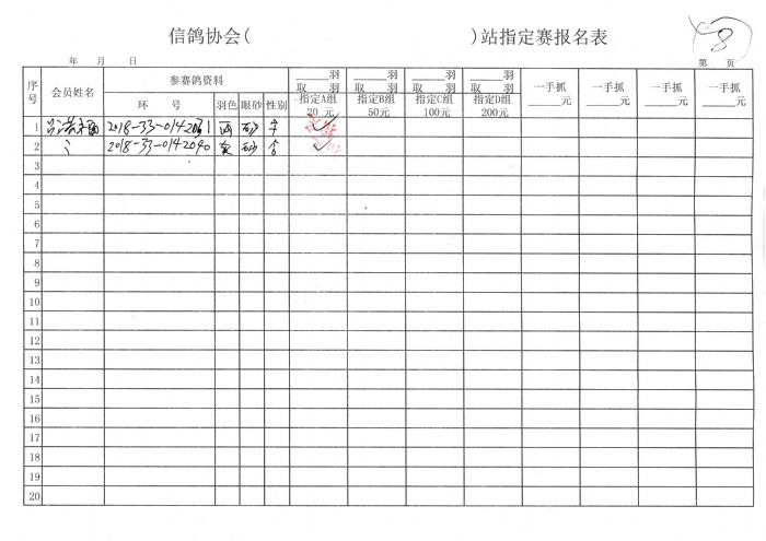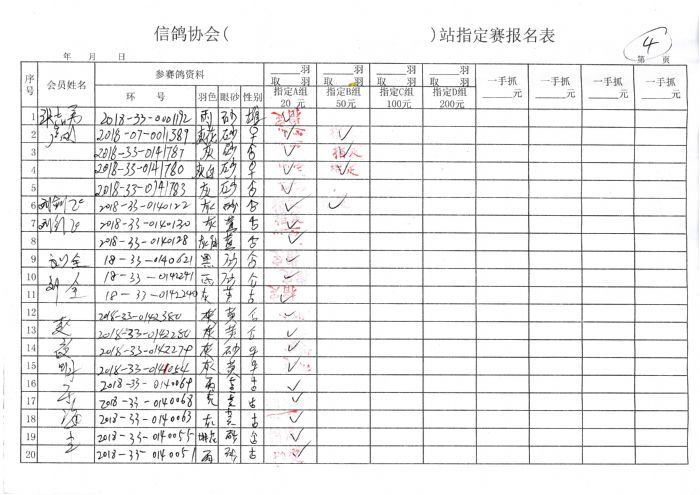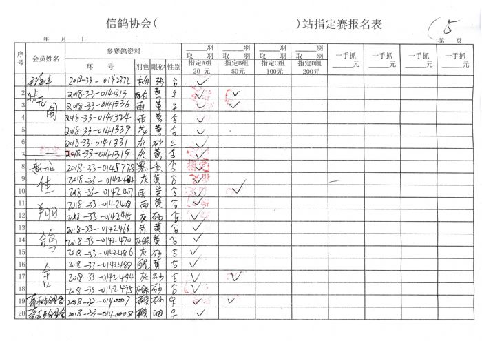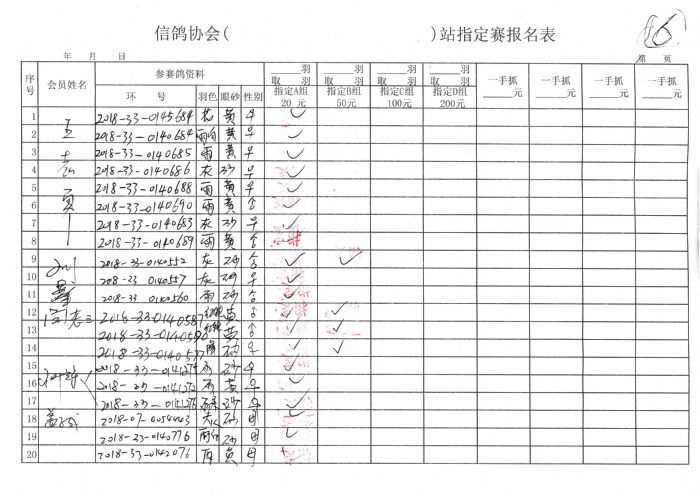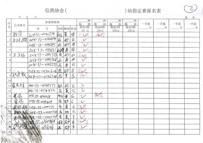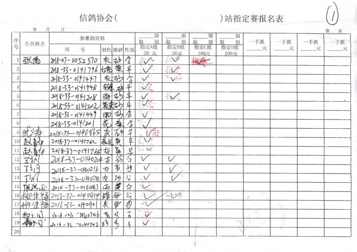 2018年秋季300公里余粮堡收费站指定鸽原始单据
