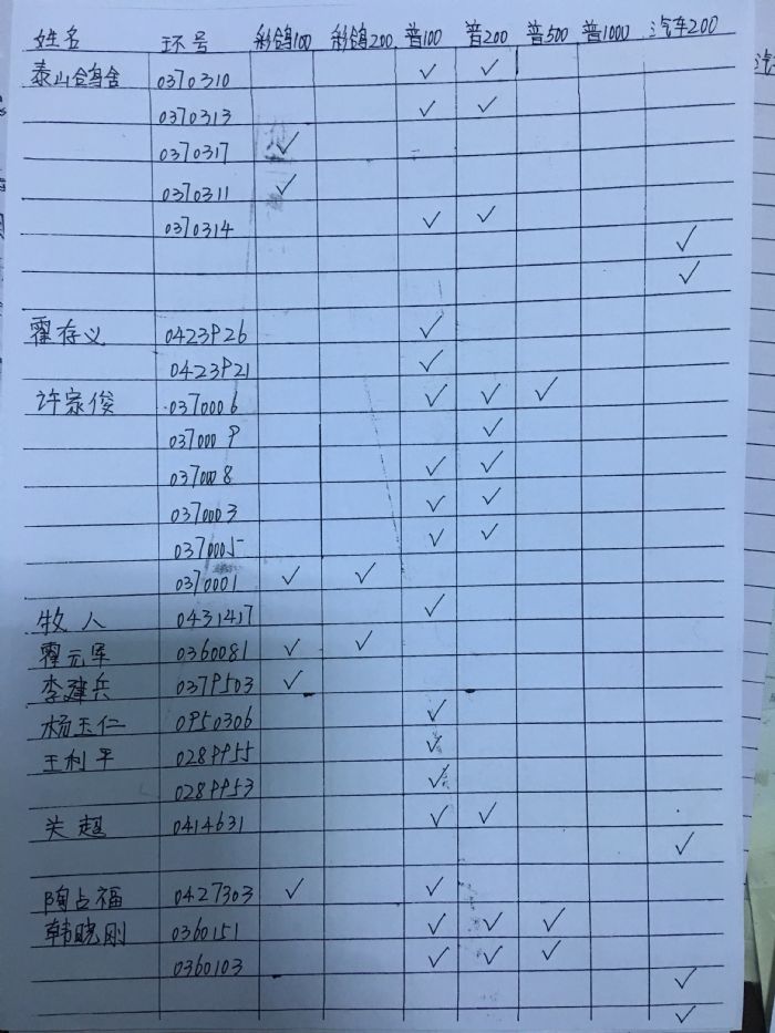 包头市青山区信鸽协会2021年秋季特比环100元组售环明细(3月31日截止售环)