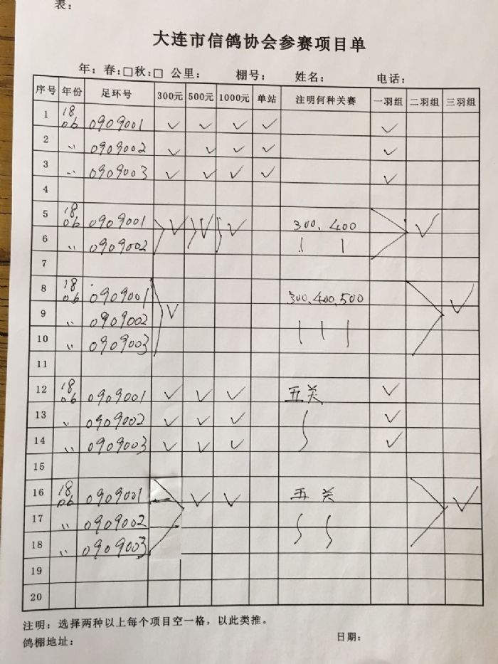 五,参赛会员要认真仔细,字迹工整填写,项目自由选择填写,所有的指定项目三户成立,如少于三户及时退款。