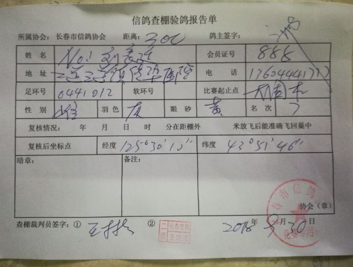长春市信鸽协会裁判委员会