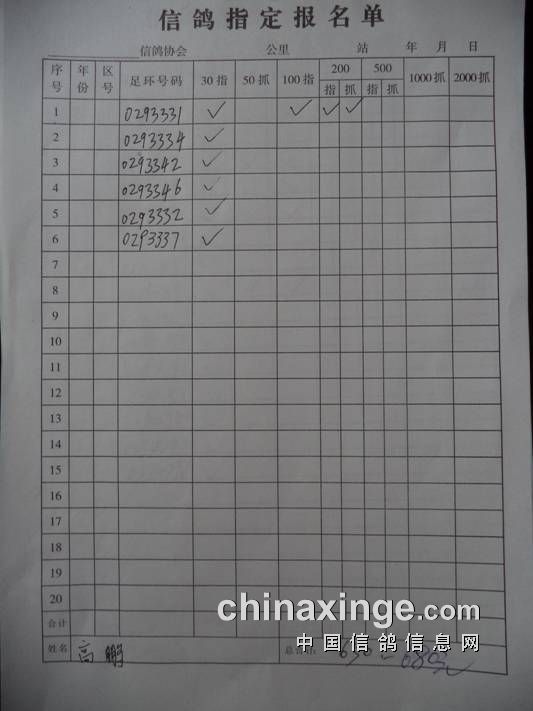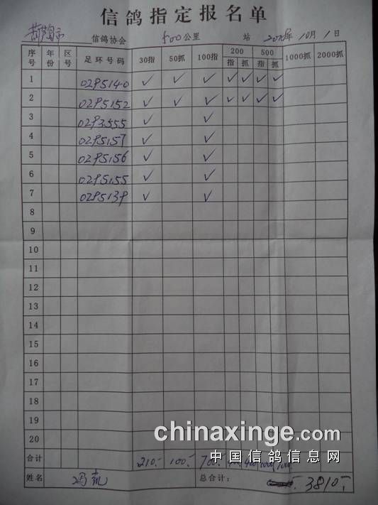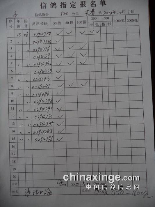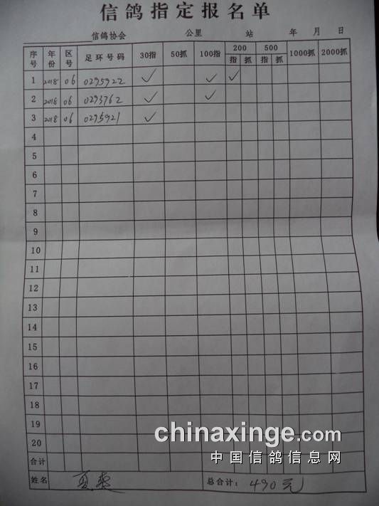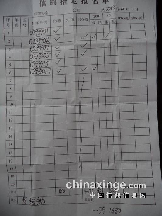 2018秋500公里指定鸽名单6
