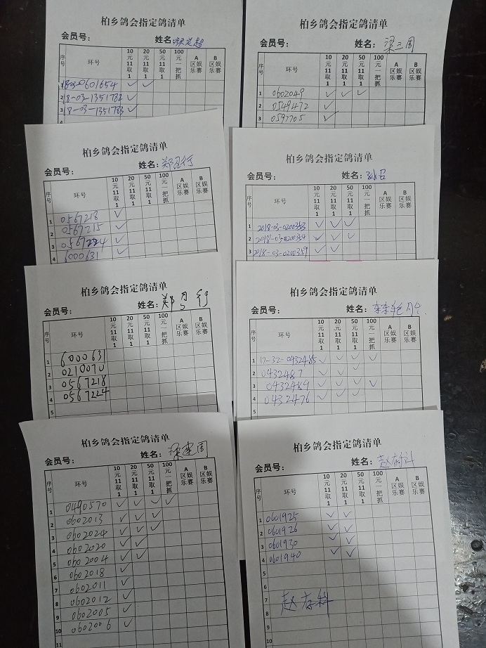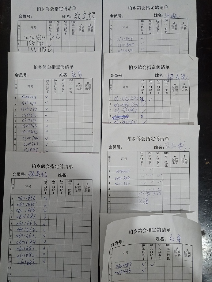 河北柏乡信鸽协会特比环资格赛指定清单