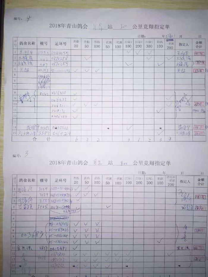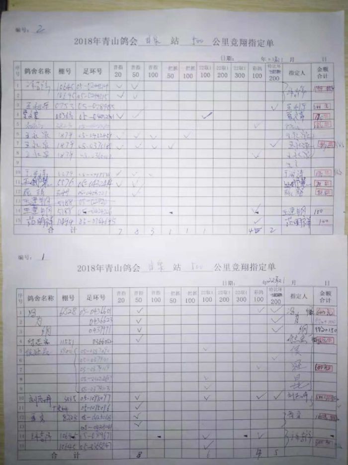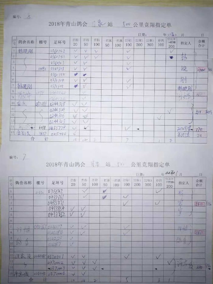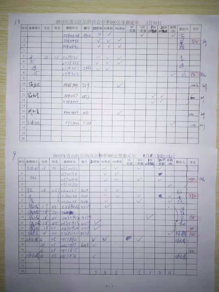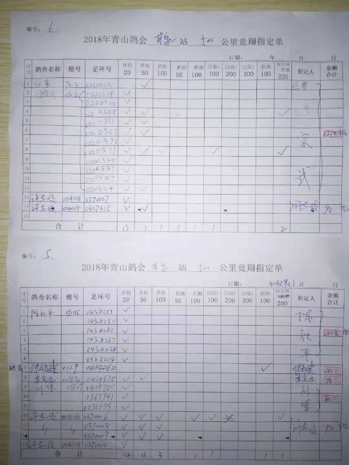 青山鸽会500公里指定原始单