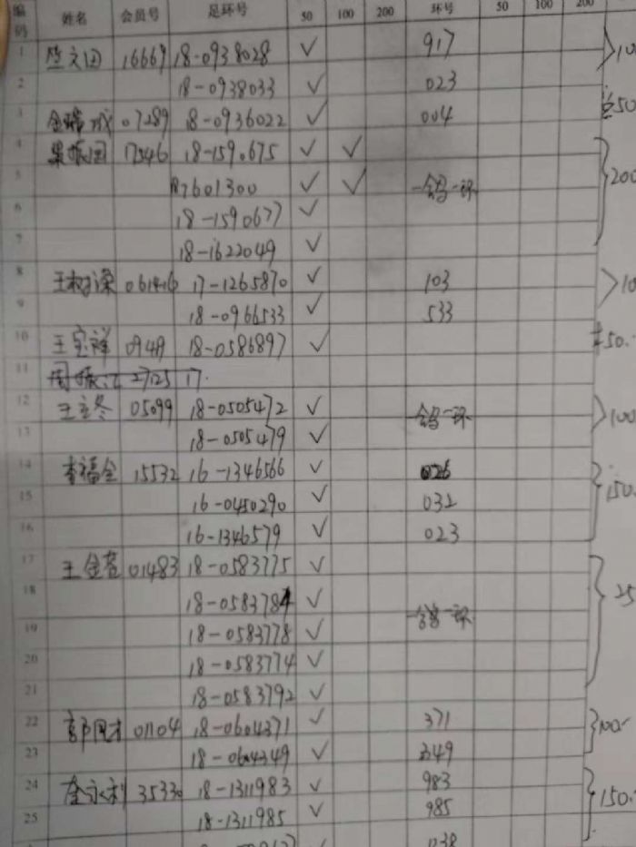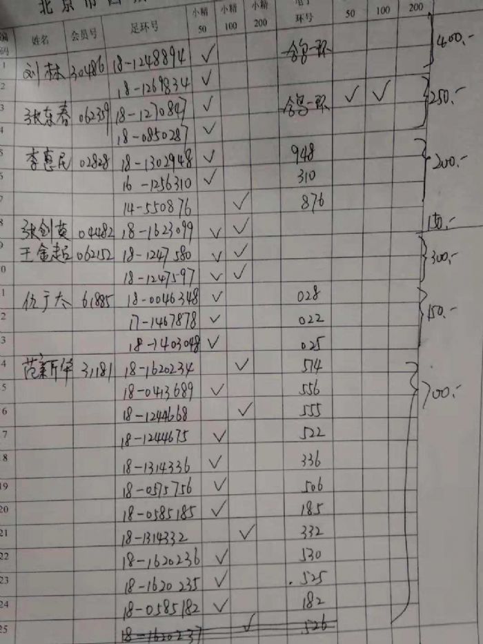 中精英50元 67 羽 中精英100元 22羽 中精英200元 10羽