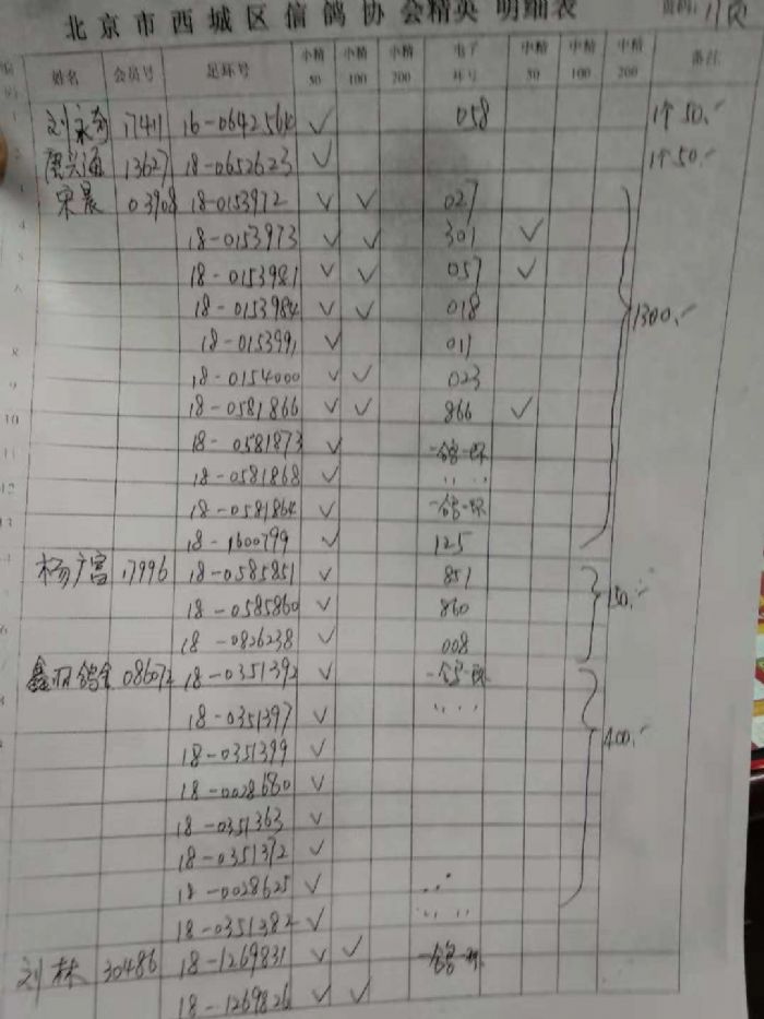 以下数据,请参赛鸽友仔细核对,如有遗漏错误,请在赛鸽归巢前,联系鸽会纠正,谢谢