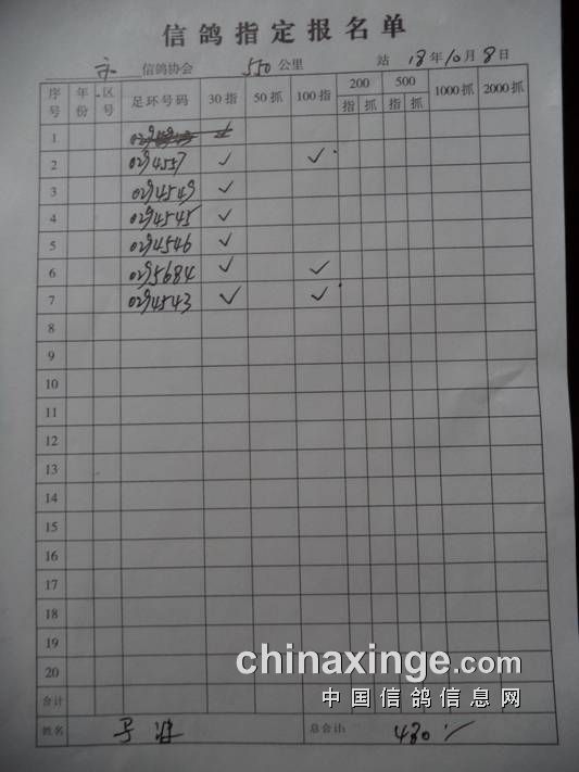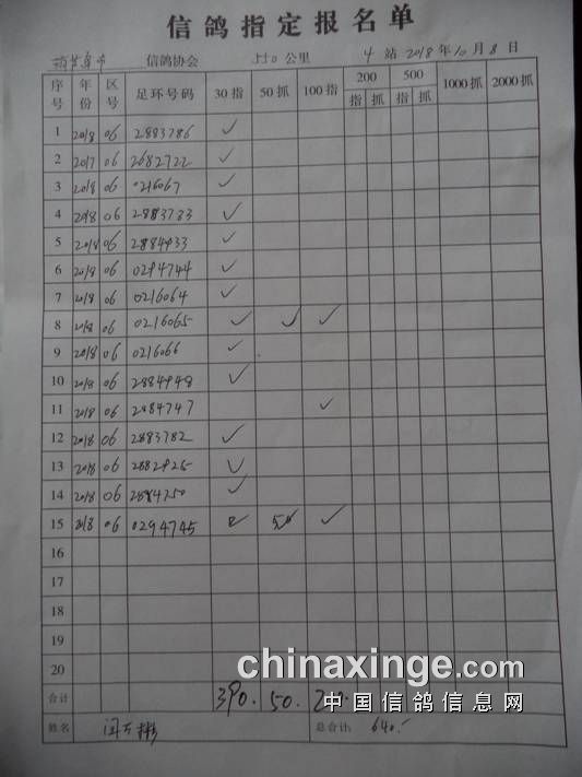 2018秋550公里指定鸽名单3