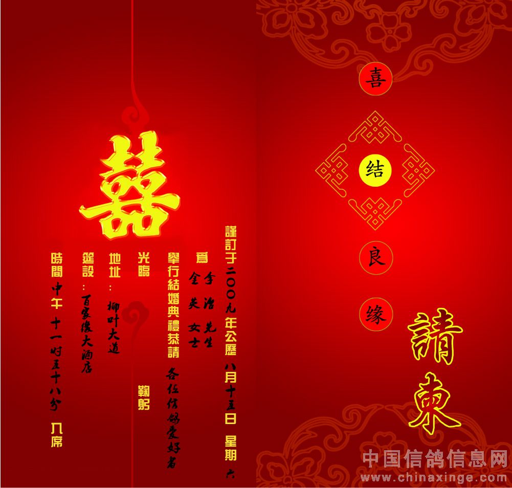常德武陵鸽协会员李治先生结婚喜帖