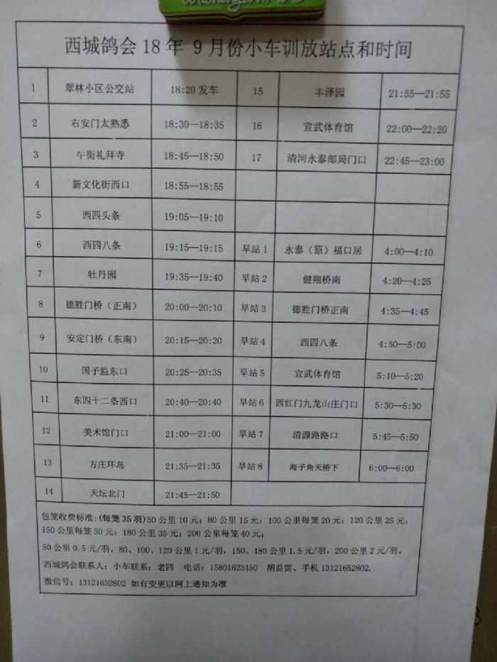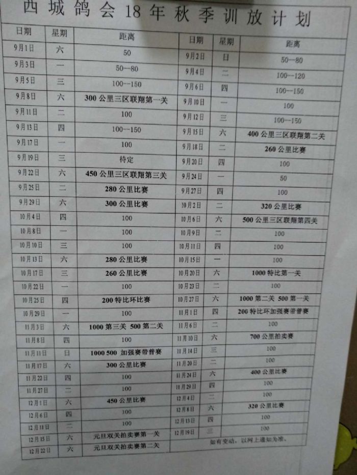 西城鸽会10日晚,11日早训100--200公里,请互相转告谢谢!