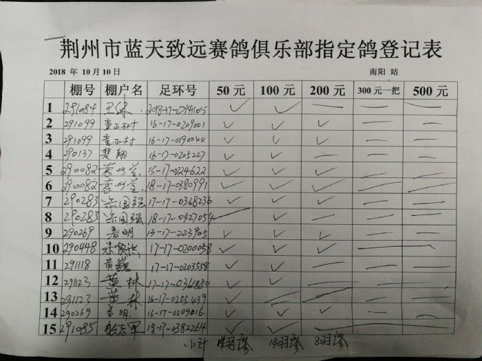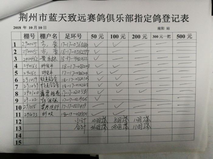 2017年11月26日480公里新郑站年度王中王比赛集鸽清单