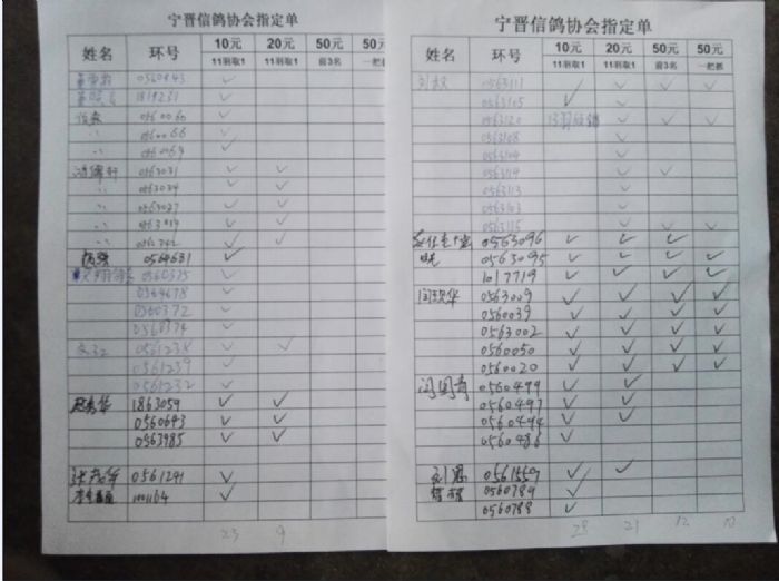 宁晋县信鸽协会500公里指定奖金分配及明细