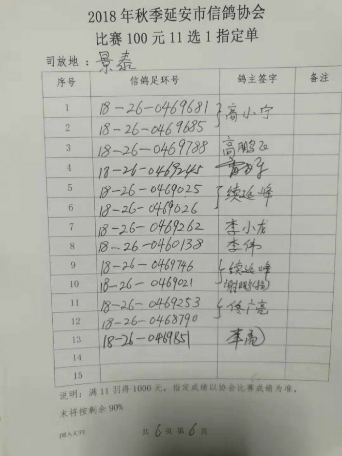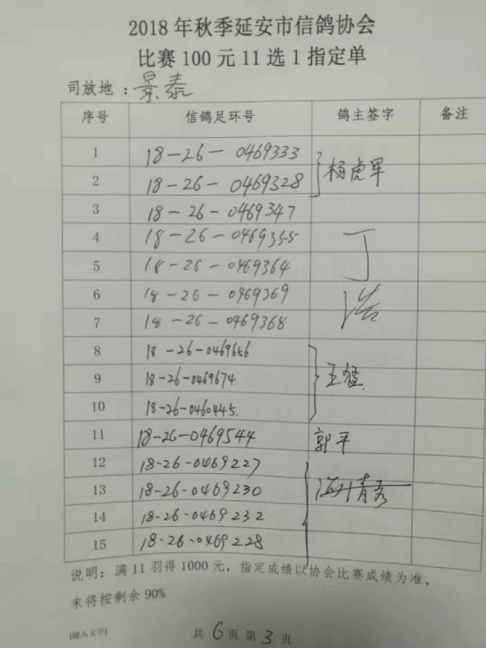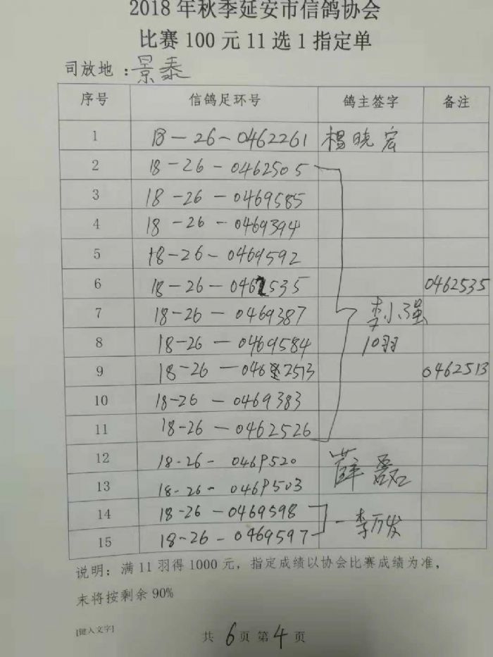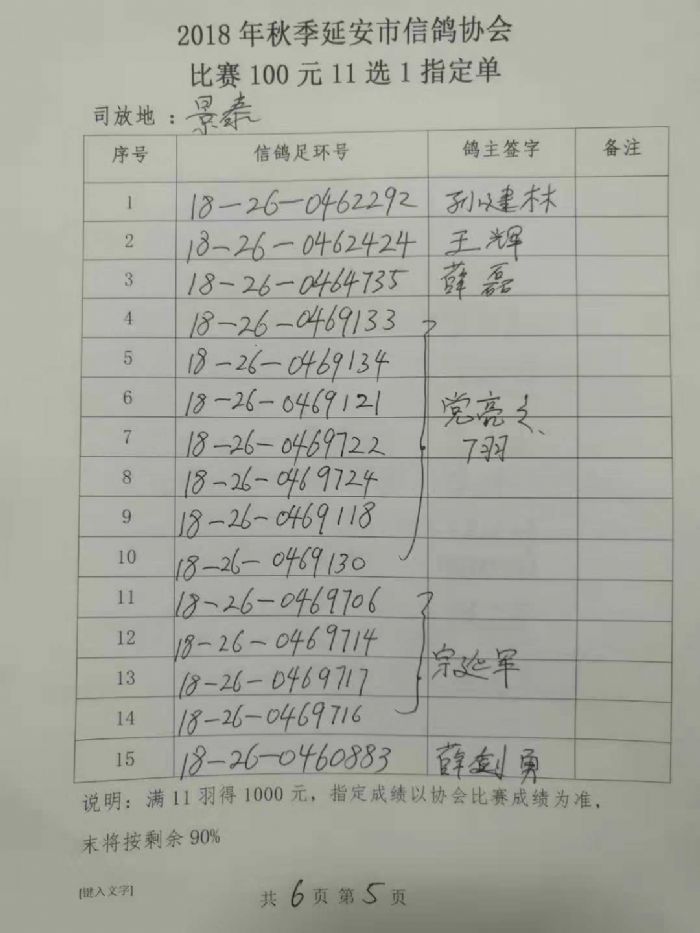 2025年秋季比赛-红寺堡站季军验鸽照片