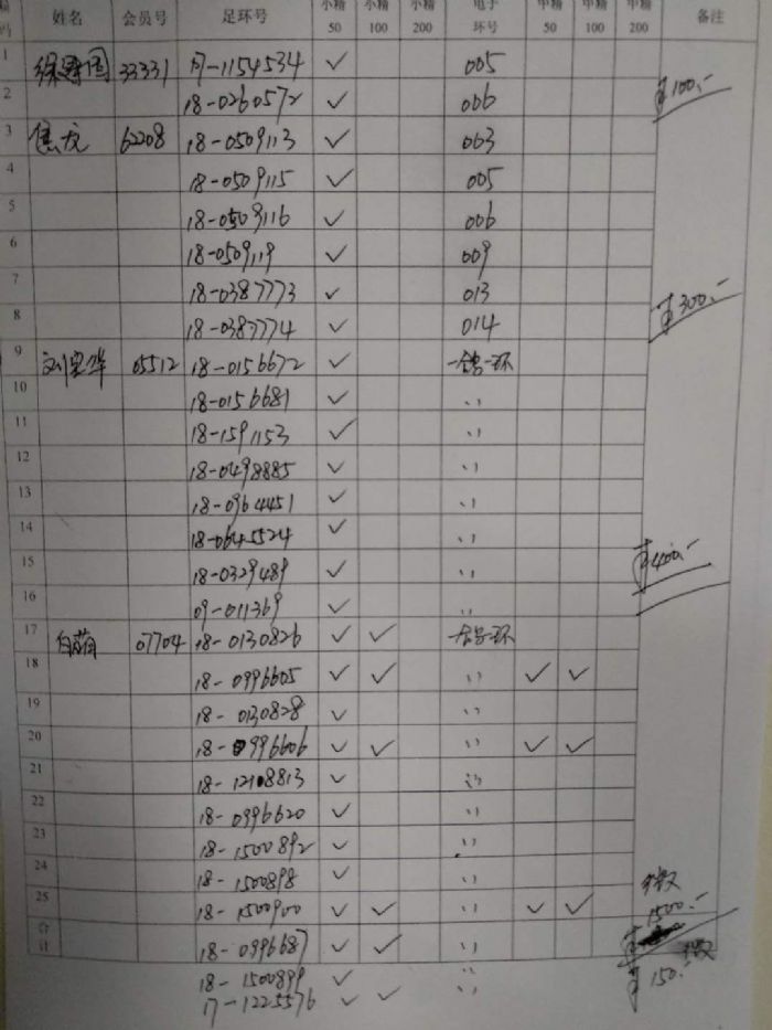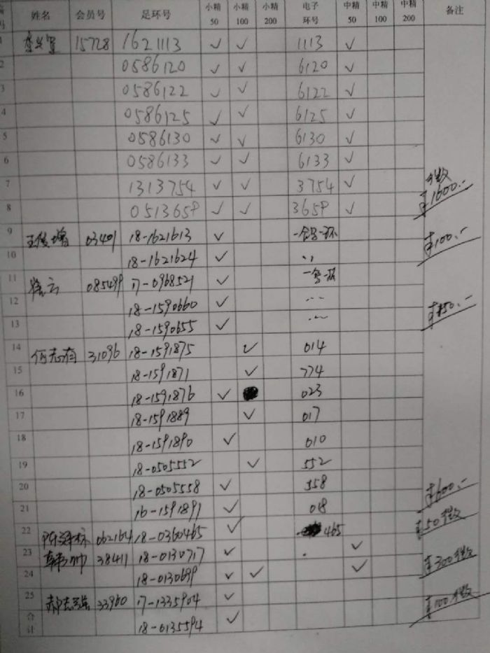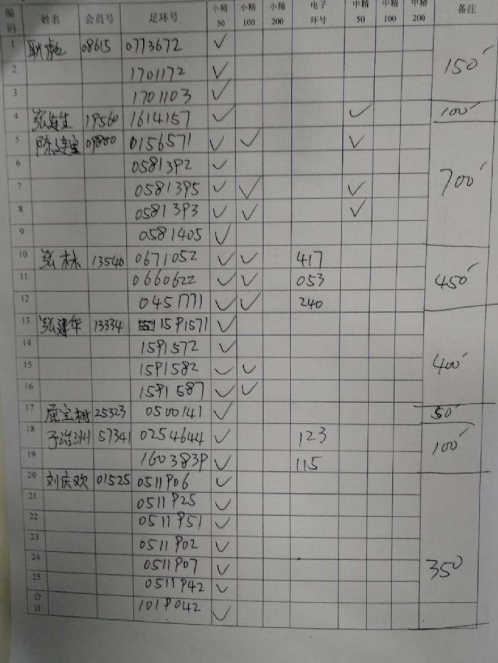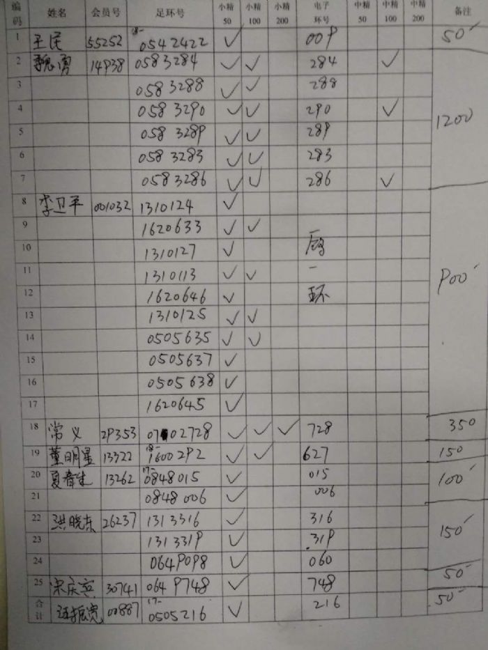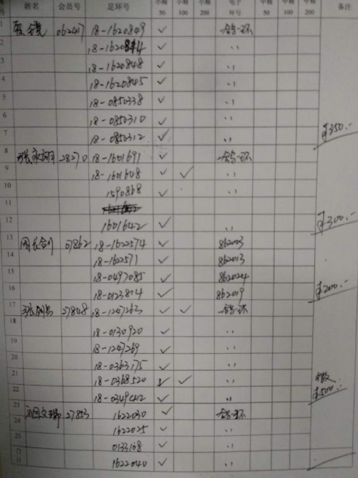 中精英50元 59羽 中精英100元 18羽 中精英200元 1 羽