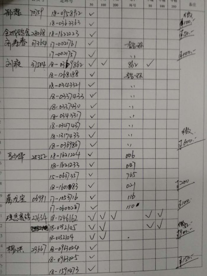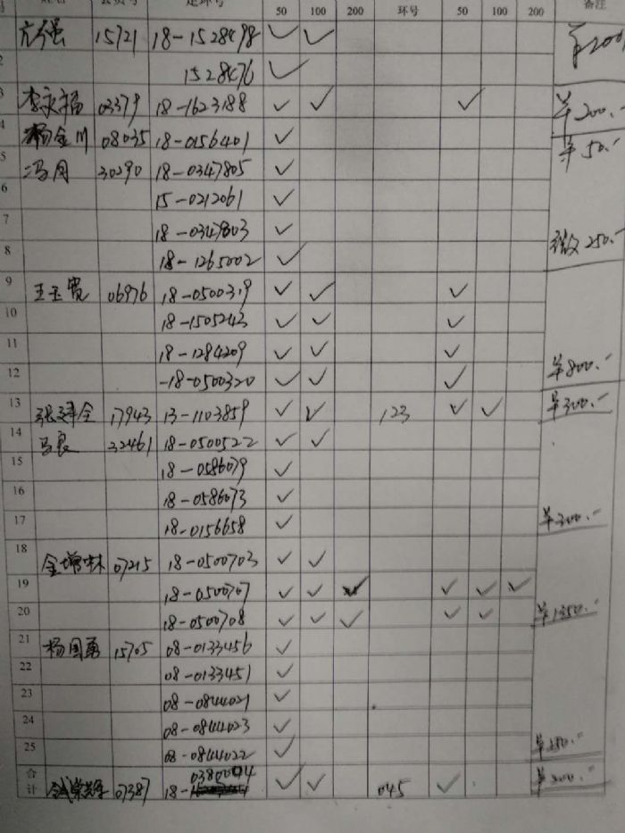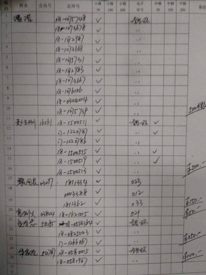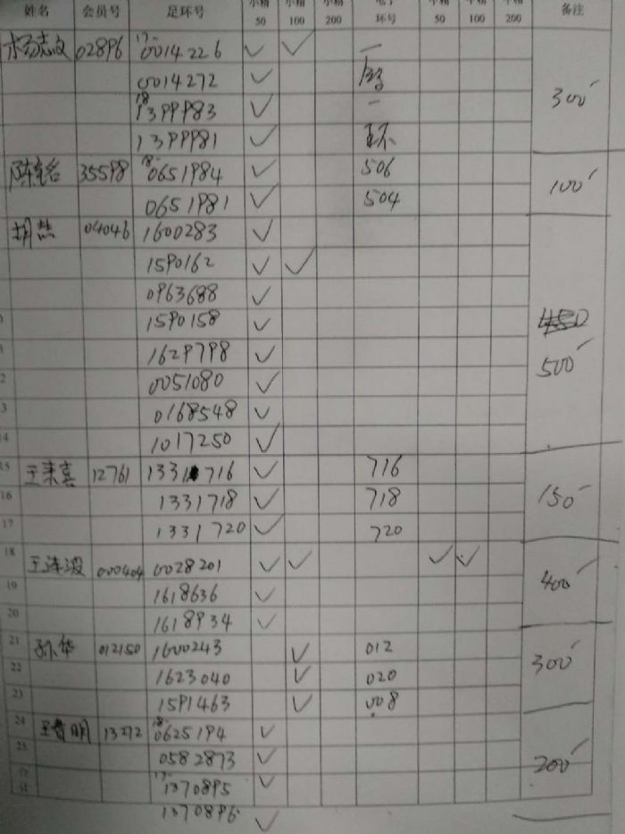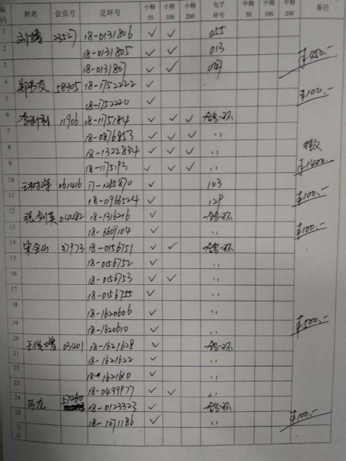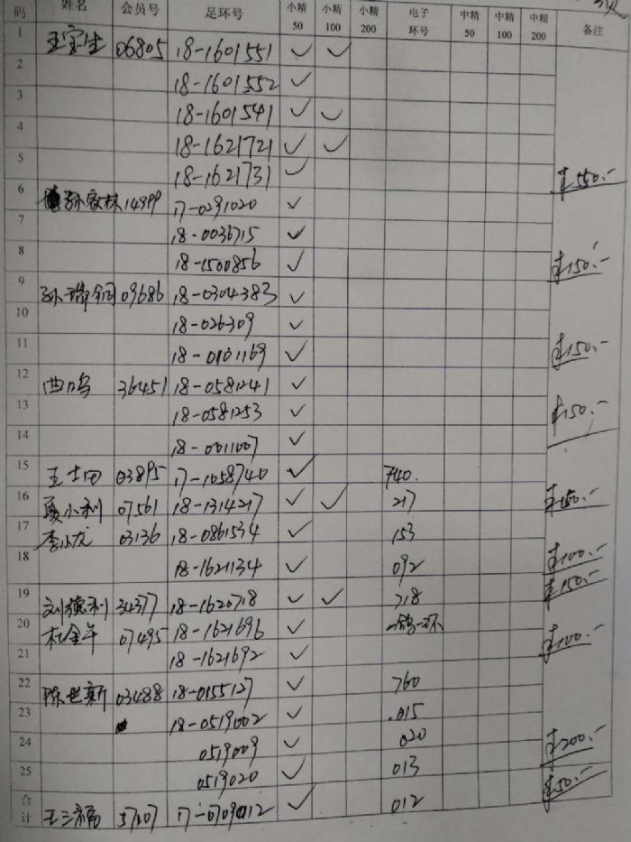 中精英50元 59羽 中精英100元 18羽 中精英200元 1 羽