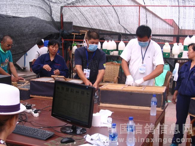 9点25扫描开始,裁判员非常认真的逐羽扫描,对部分赛鸽核对足环号码。到11时16分扫描2757羽。午餐由公棚提供,省领导、裁判员和鸽友代表在公棚共进午餐。下午12时45分开始工作,第一羽扫描鸽的足环号码为2009-06-169198。下午14时天公不作美下起了小雨,对扫描工作带来很多不便。截止15时工作结束共扫描6140羽,其中43羽病残鸽公棚老板主动提出鸽主领回。最后省鸽会领导对忠旺公棚的硬件设施和公棚管理给予高度评价,希望他们加强后期管理,给鸽友们一个满意的结果。公棚老板表示一定再接再厉,决不辜负鸽有的希望。