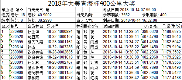 西宁市信鸽协会秋季特比环双关综合预览版(大环)