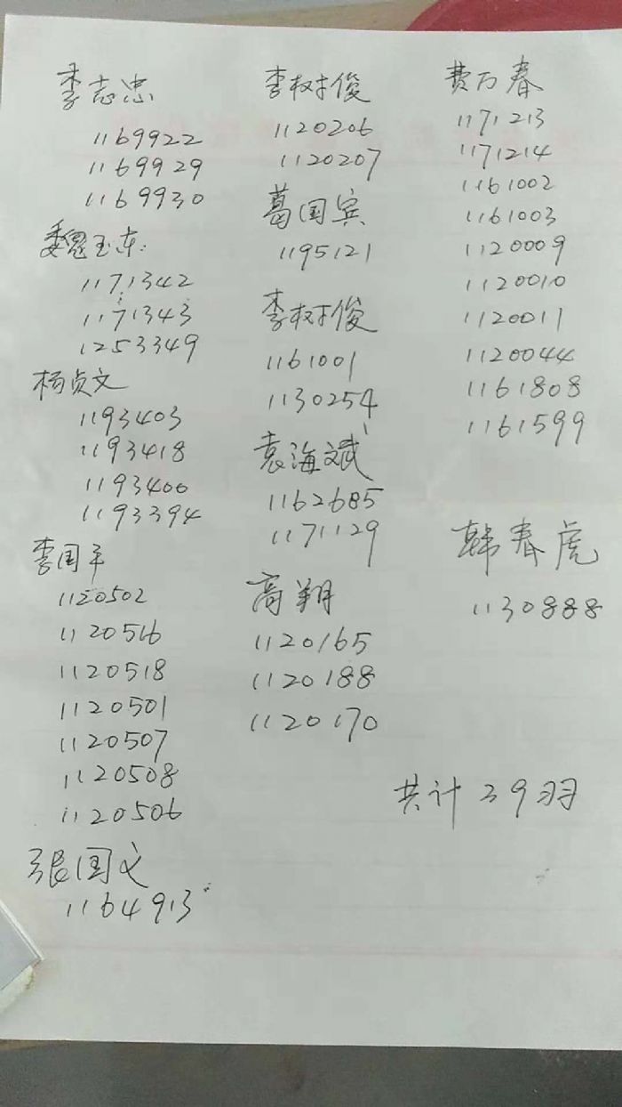 衡水鸽会25年秋第三关520公里比赛集鸽清单