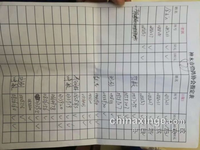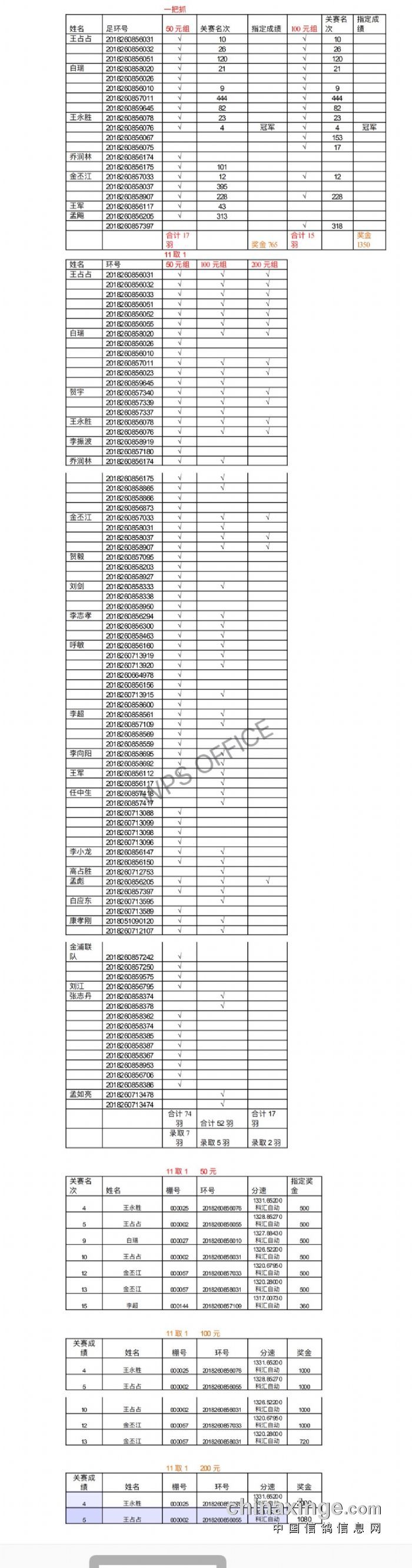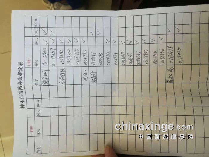 神木市信鸽协会200元特比环售环明细及奖金分配