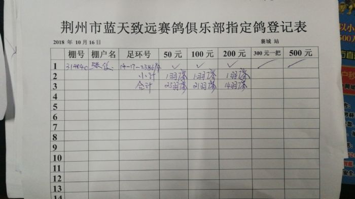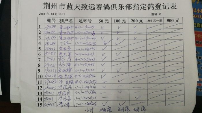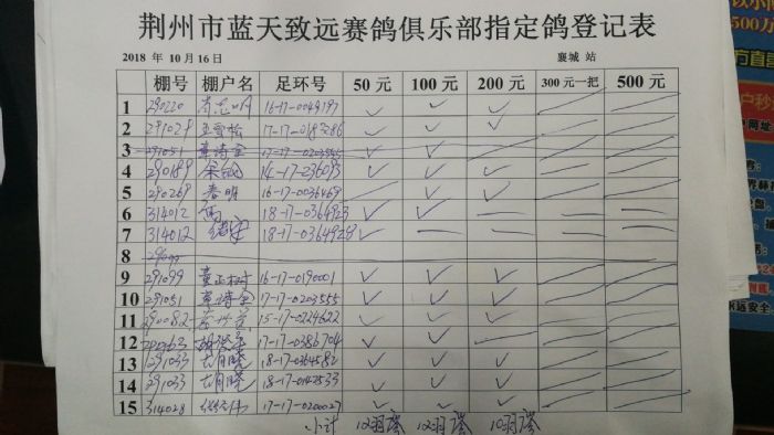 2018年10月17日400公里襄城站比赛指定鸽明细
