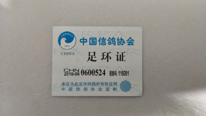 第十名鸽:000097 张连锁 0600524