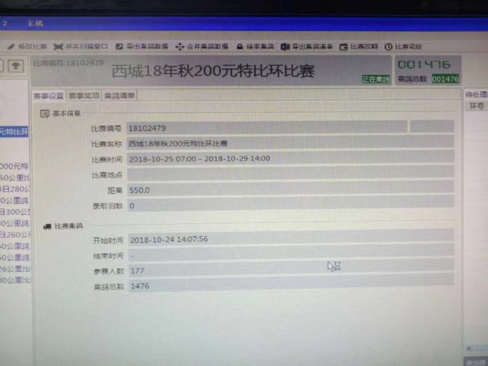 西城18年秋200元特比环 上笼1476羽 预祝参赛鸽友赛出好成绩,谢谢