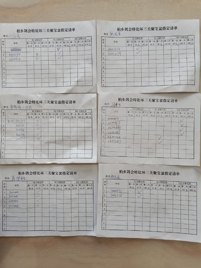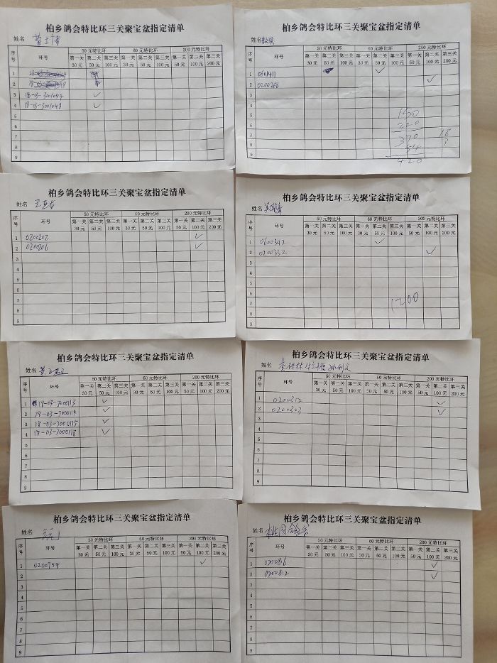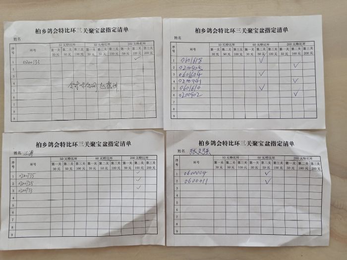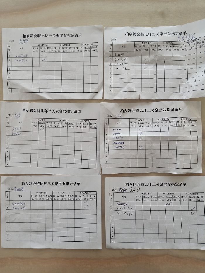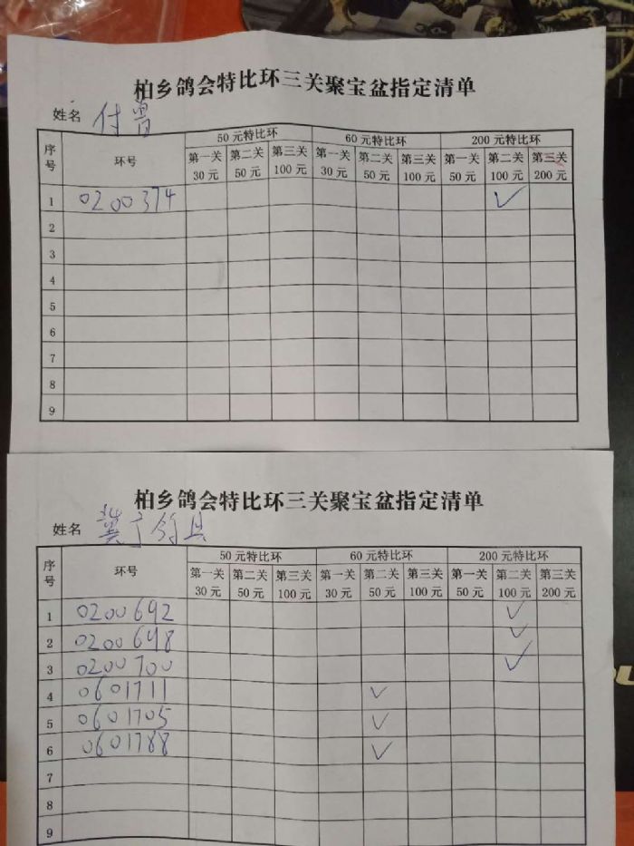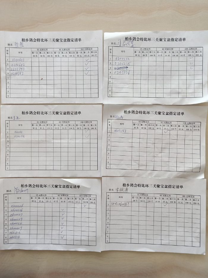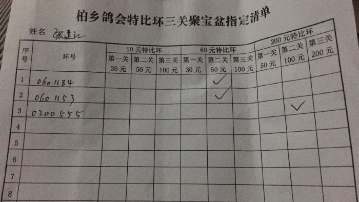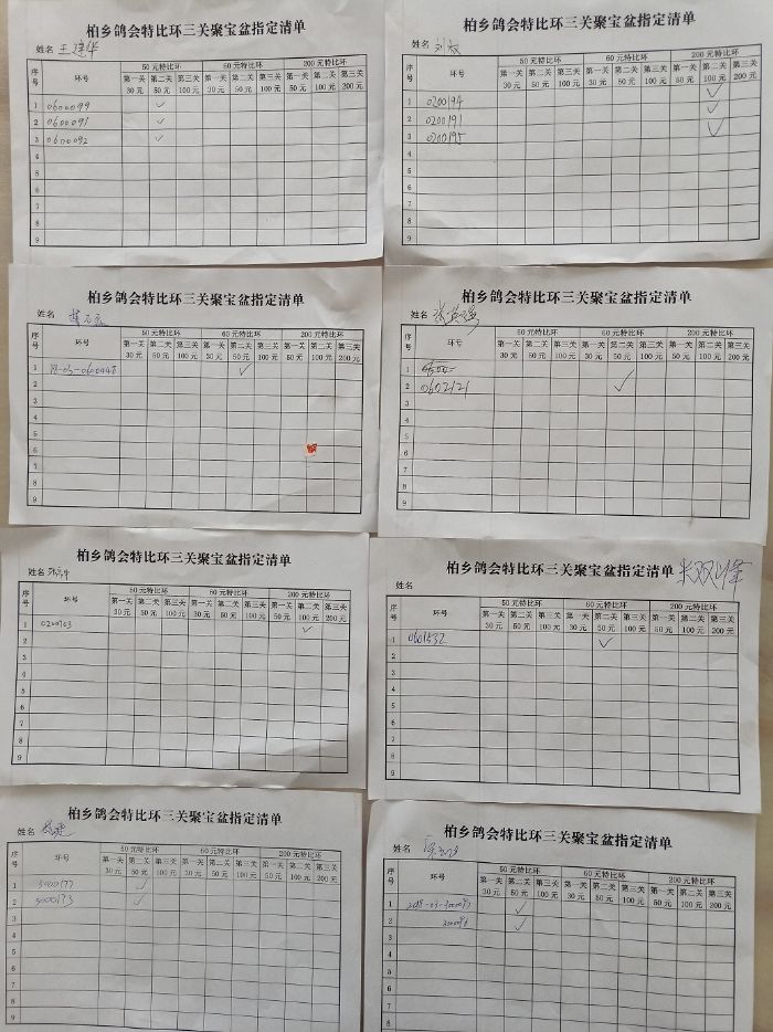 柏乡信鸽协会特比环第二关聚宝盆清单