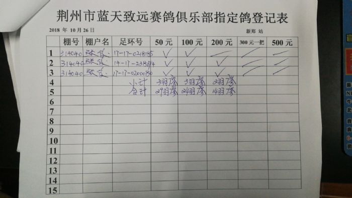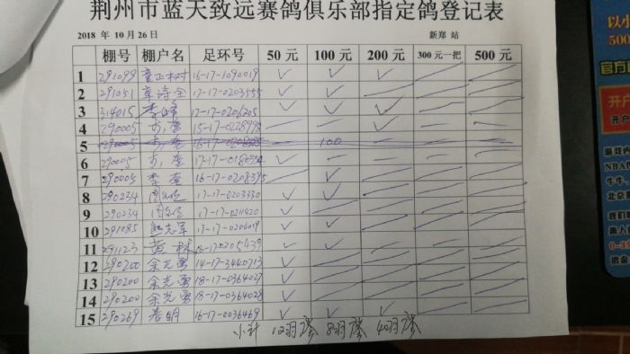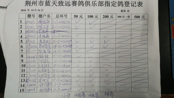 2018年10月27日480公里新郑站比赛指定鸽明细