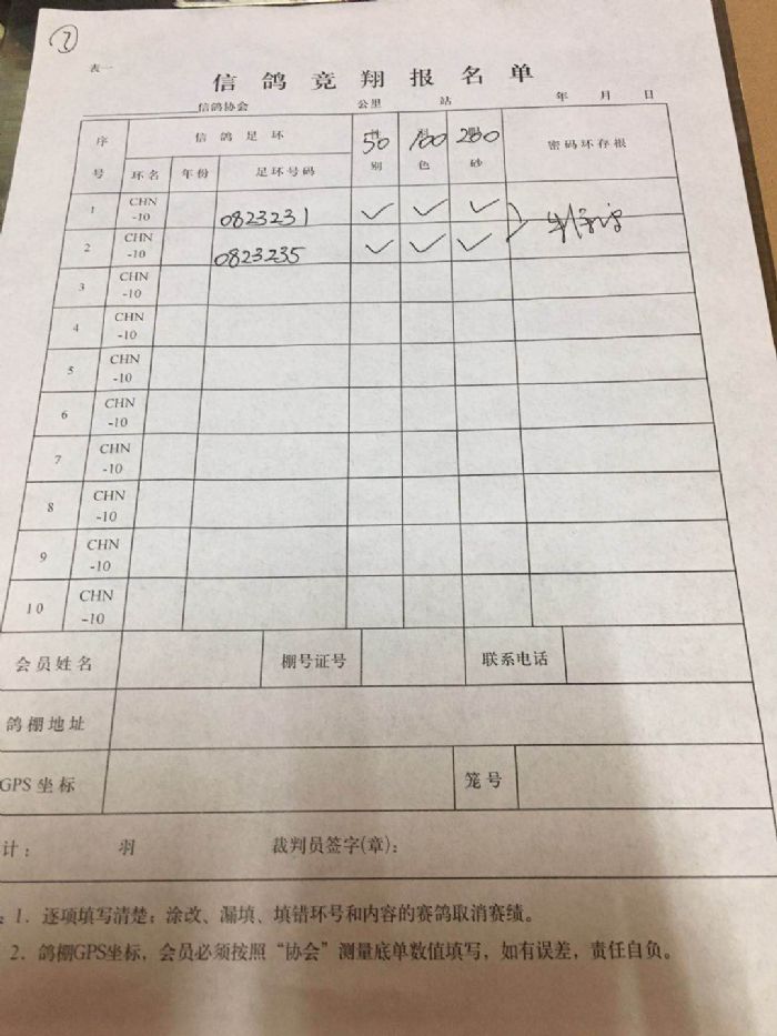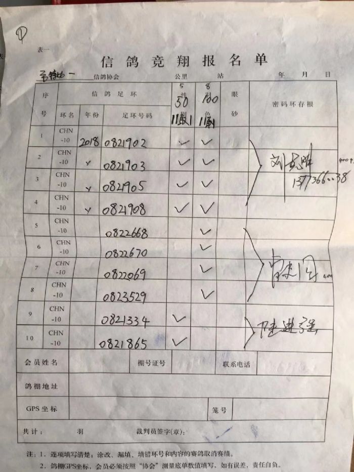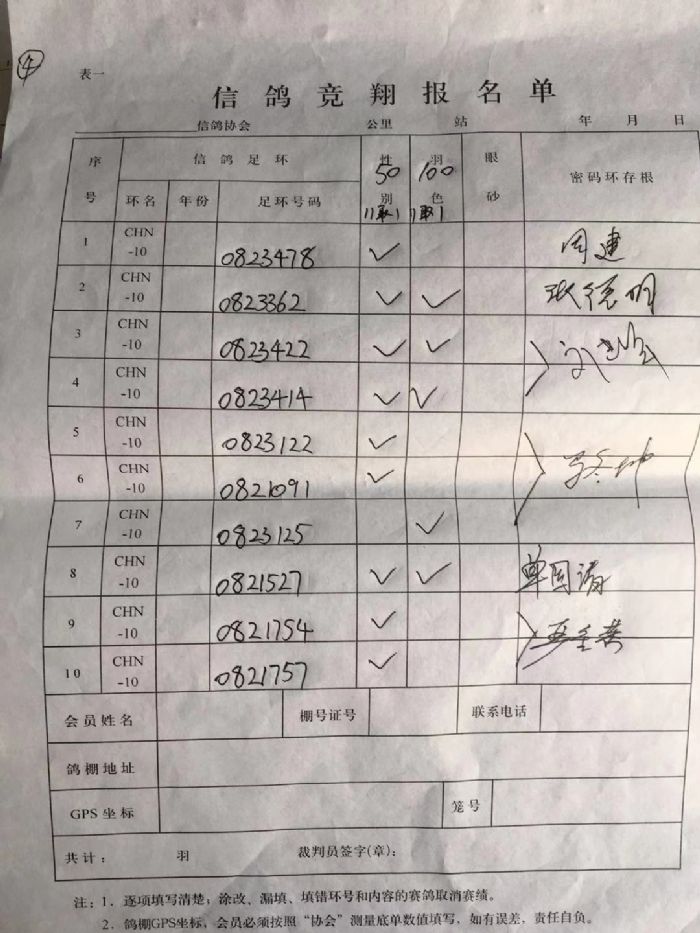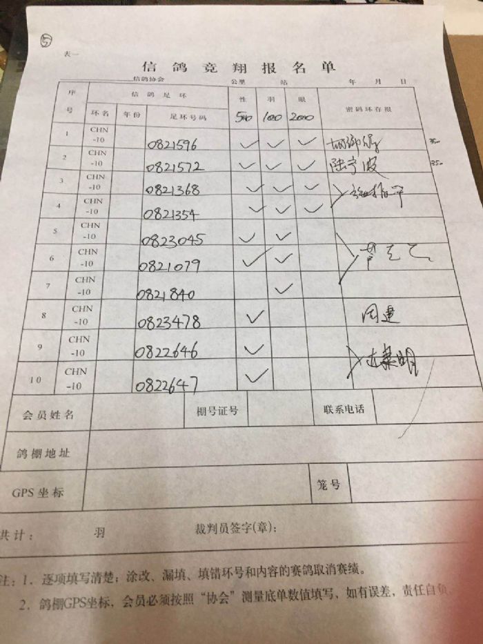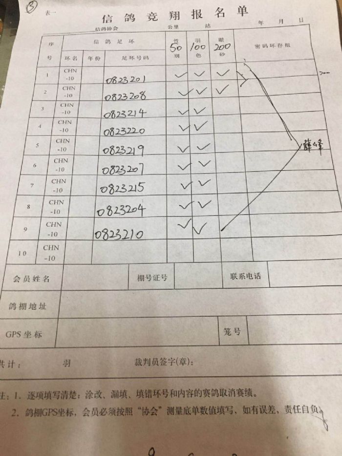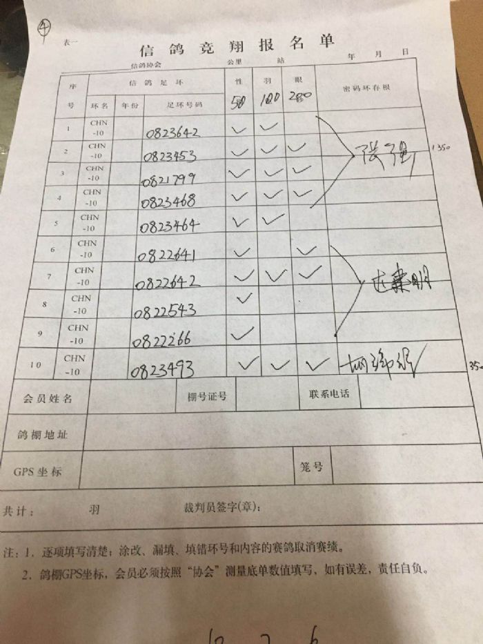 2018年南通第三届“鸽王杯”特比环第一关指定鸽明细