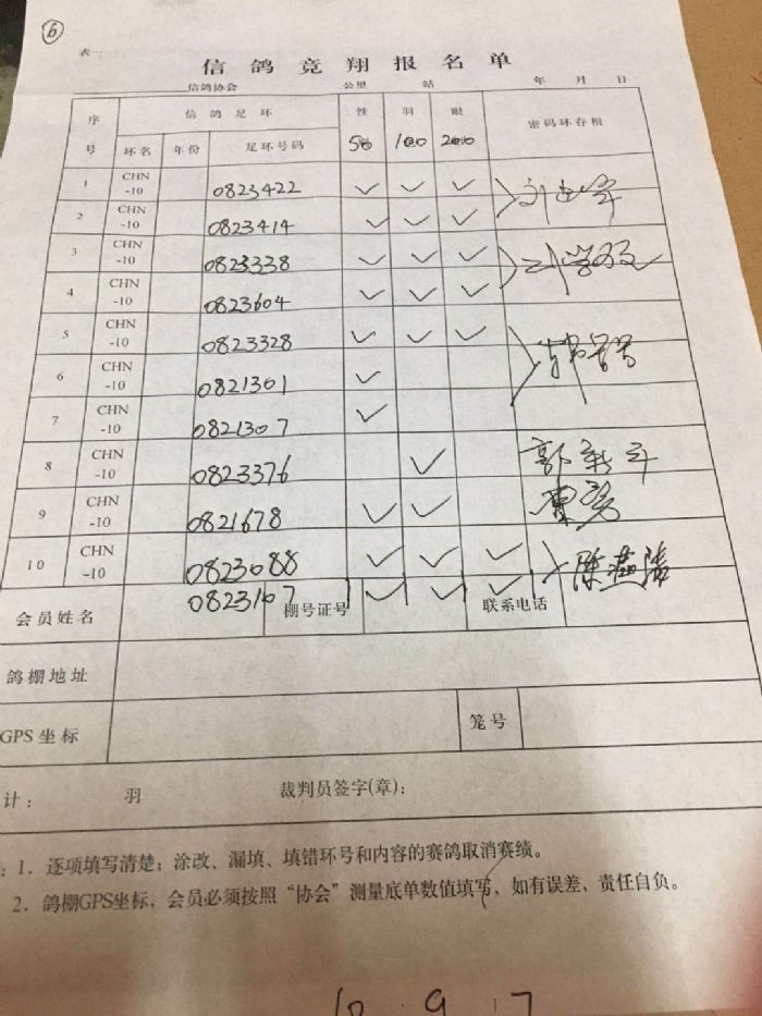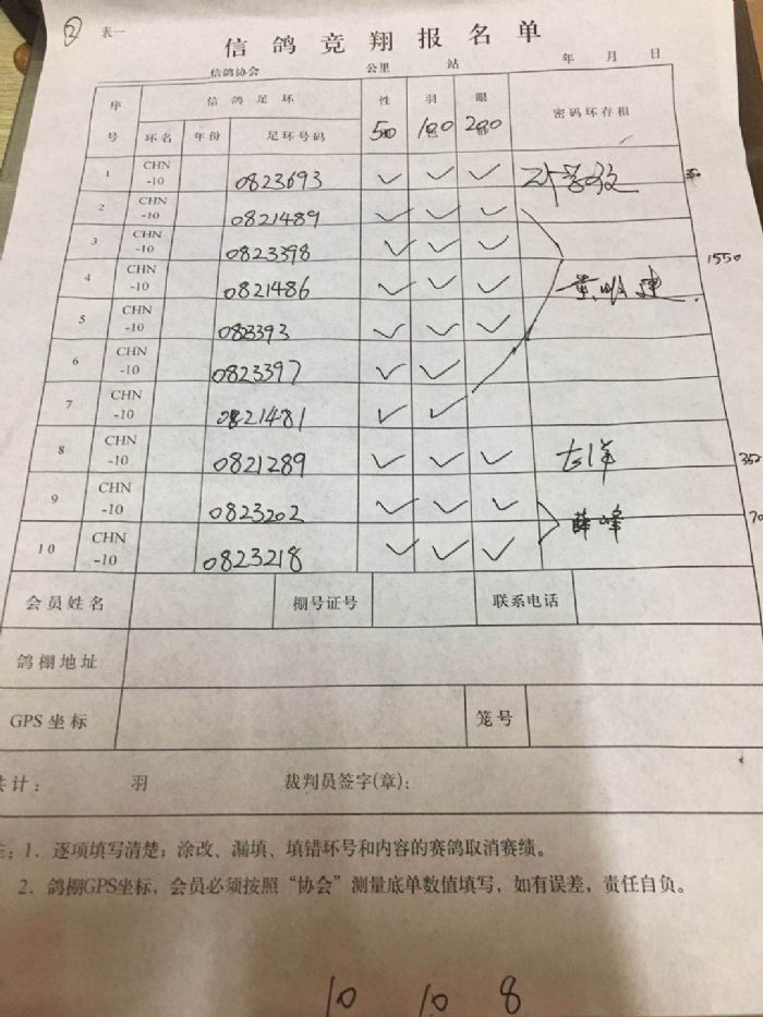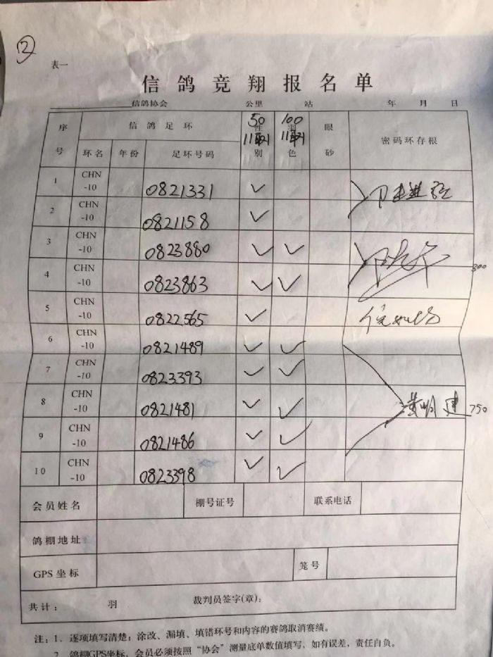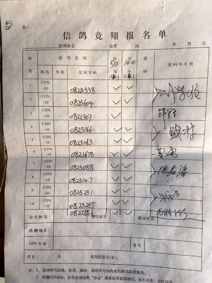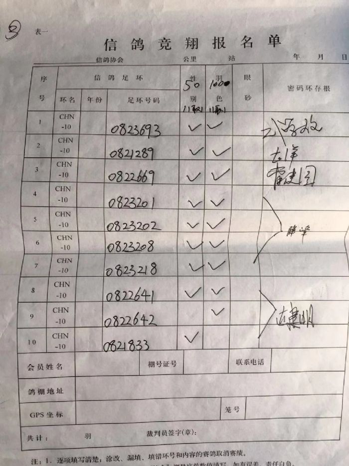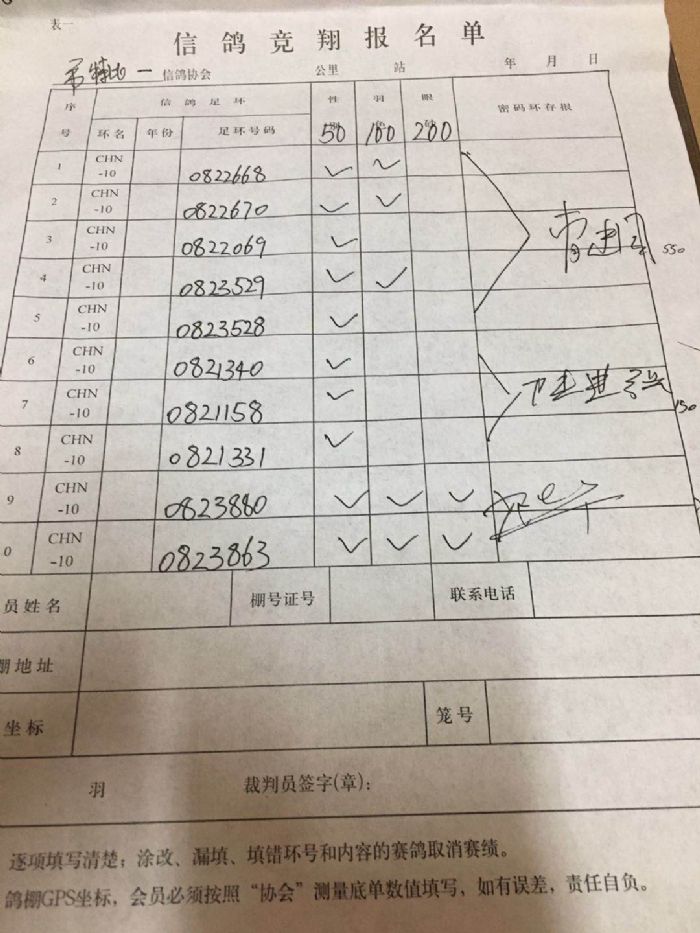 2018年南通第三届“鸽王杯”特比环第一关指定鸽明细